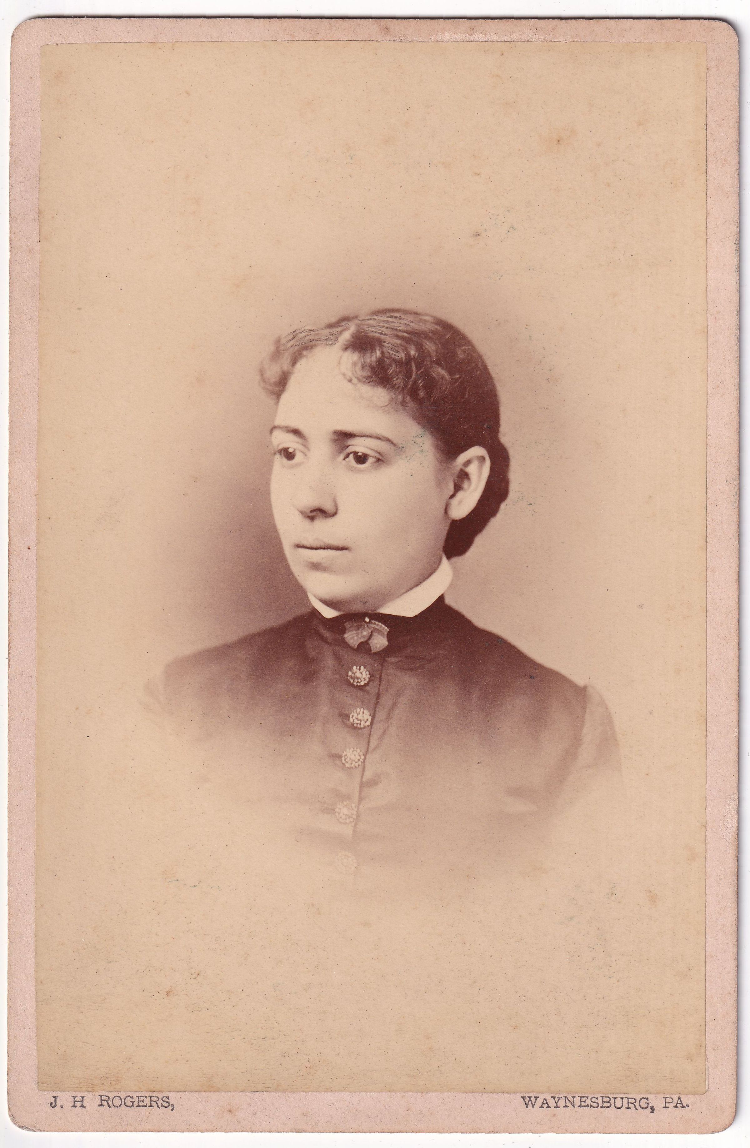 SOURCE CITATION: Mary Woodruff Denny [1858-1937]; circa 1880-1890. image by J. H. Rogers, Waynesburg, Pa.; item no. DENN-AN002-0003, Josephine Denny Collection, shared by Farley Toothman; Greene Connections Archives Project (GreeneConnections.com).