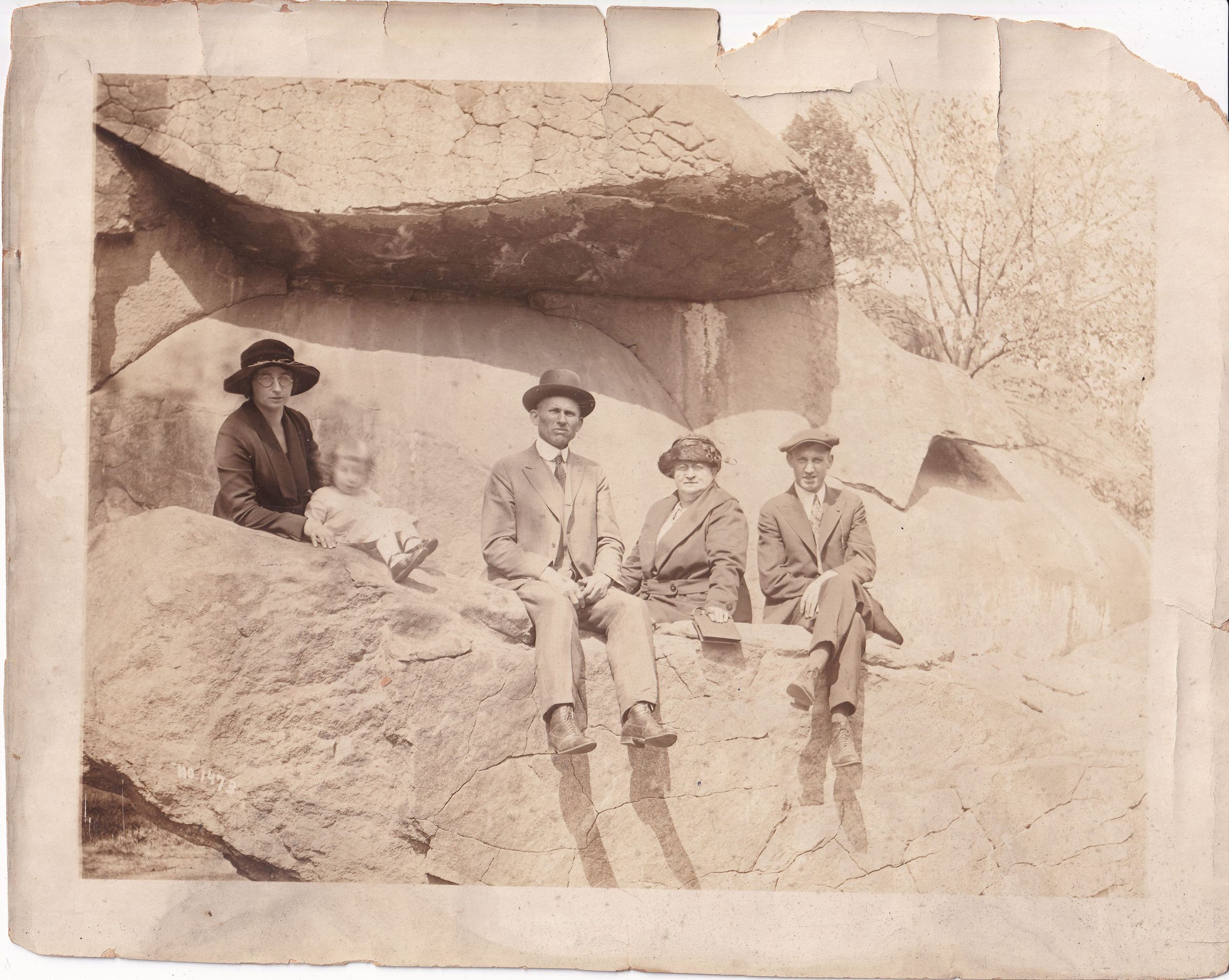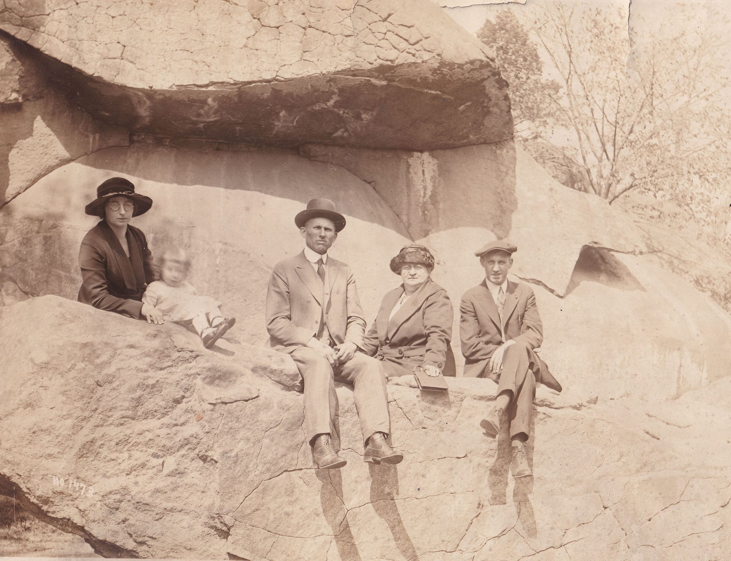 SOURCE CITATION: [Left-Right]: Mary (Vance) McCann [1898-1987], Helen (McCann) Miller [1919-1984], George Birch Vance [1870-1928], Jessie Dell (McFarland) Vance [1868-1935], Marshall Albert McCann [1895-1956]; circa 1920; item no. MILB-AN001-0006-0027, Vance Series, Mary (Vance) McCann Collection, shared by her grandson, William Marshall Miller; Greene Connections Archives Project (www.GreeneConnections.com).