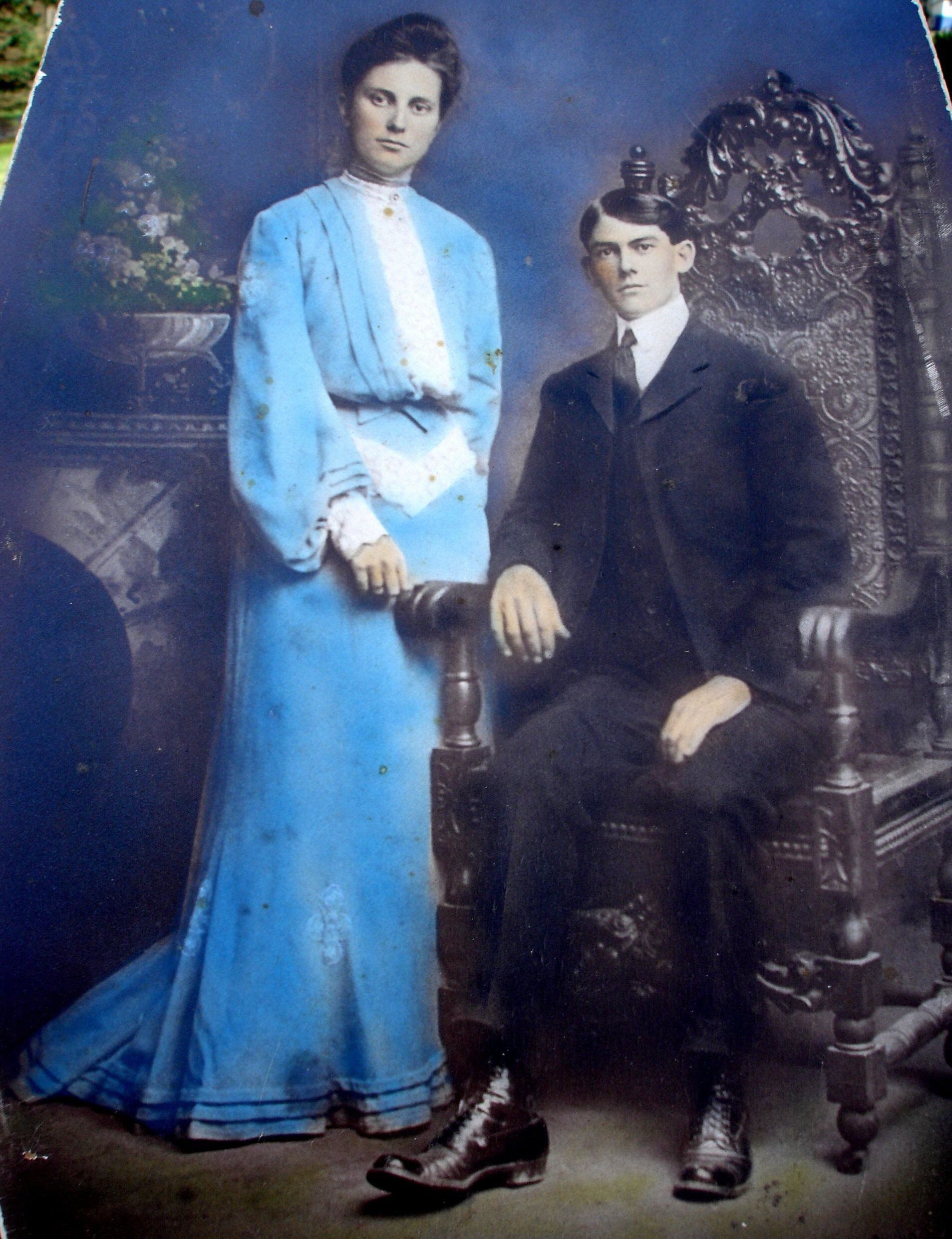SOURCE CITATION: Melville Dunreath Miller and his first wife, Jessie Wilmetta (Rasel) Miller, on their wedding day, 17 March 1904; item no. CAND_AN008_0001, Candice Lynn Buchanan Collection; Greene Connections Archives Project (GreeneConnections.com).