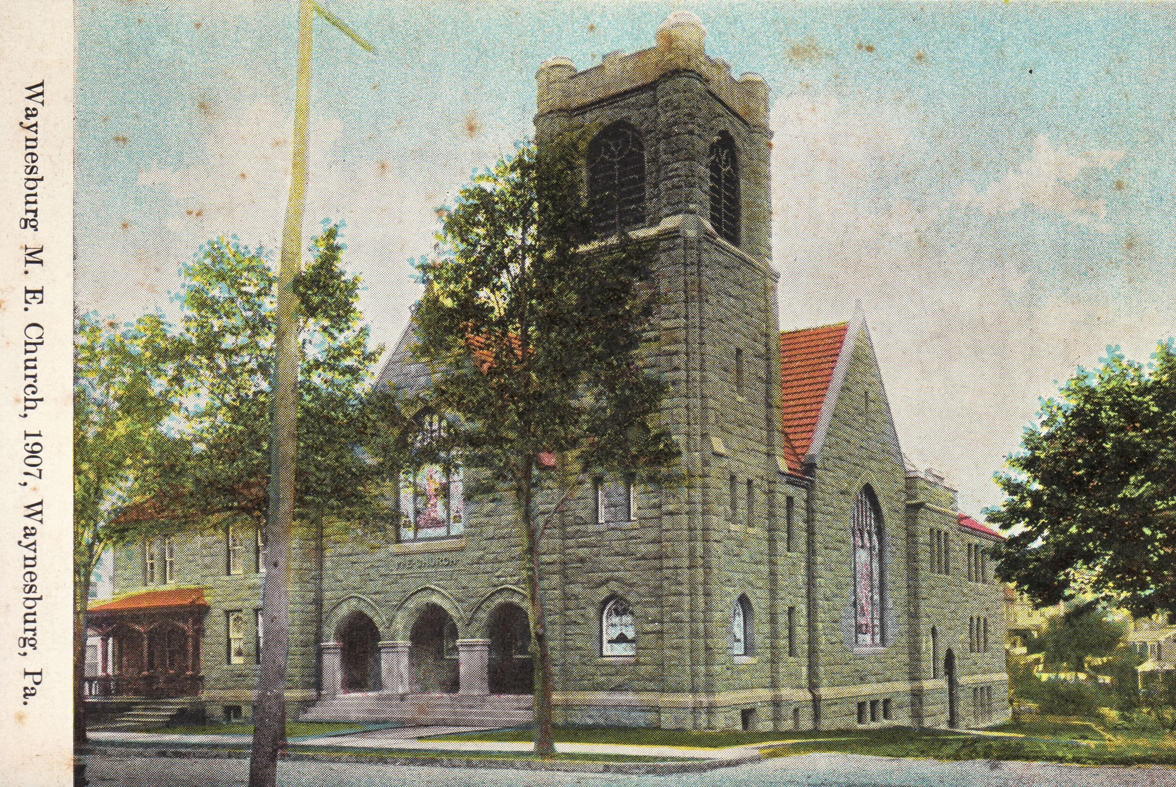 Source Citation: Methodist Episcopal Church on the corner of Richhill and Franklin Streets in Waynesburg, item no. GCHS-AN027-0001-0141, Greene County Historical Society Collection, Greene Connections Archives Project (www.GreeneConnections.com).