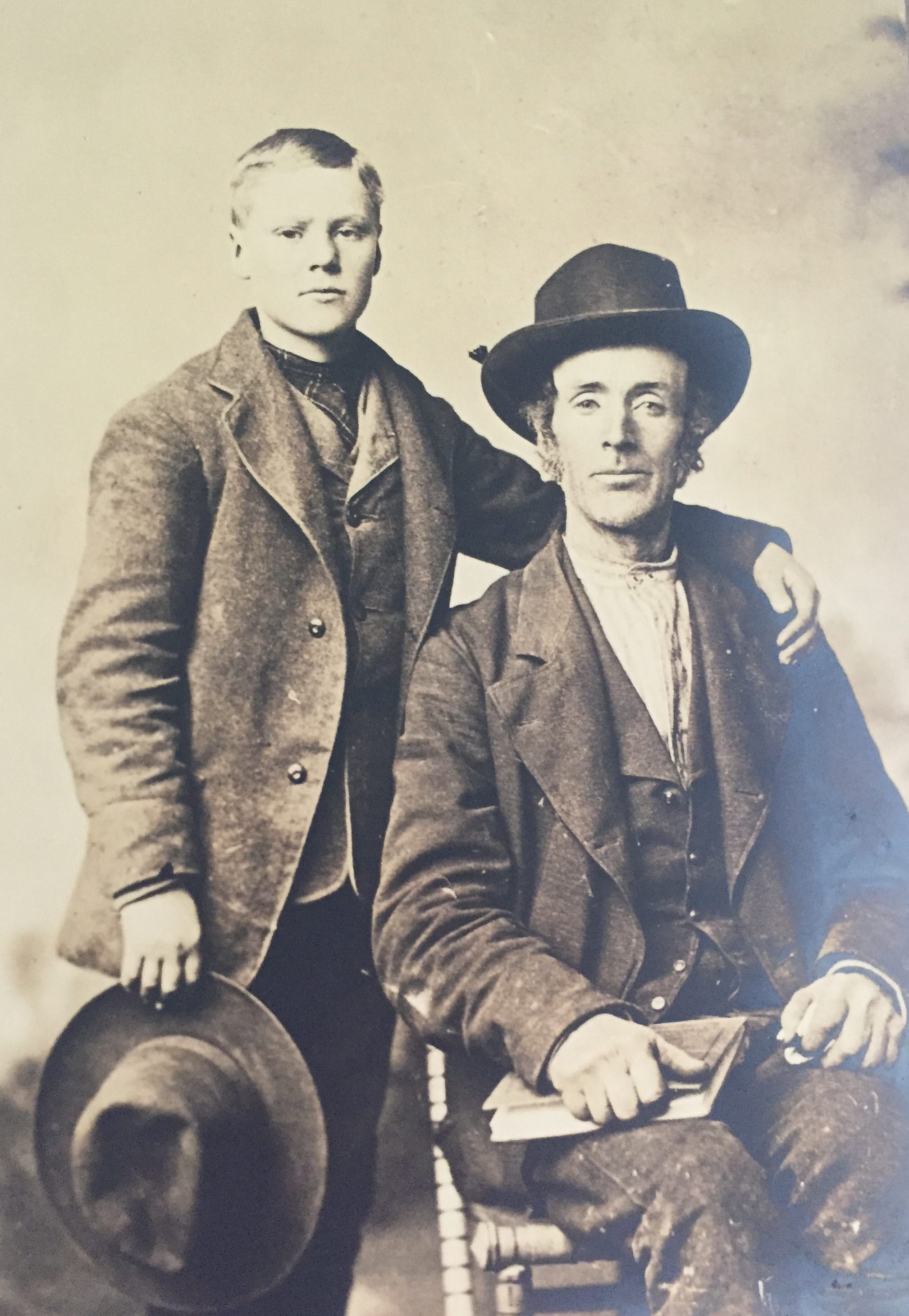 Source Citation: Michael Crow [1818-1908] with his son Wylie Lee Crow [1867-1945], item no. THRJ-AN001-0027, Throckmorton-Bentley Genealogy Series, Dr. Jeannette Franc Throckmorton Collection, Greene Connections Archives Project (www.GreeneConnections.com).