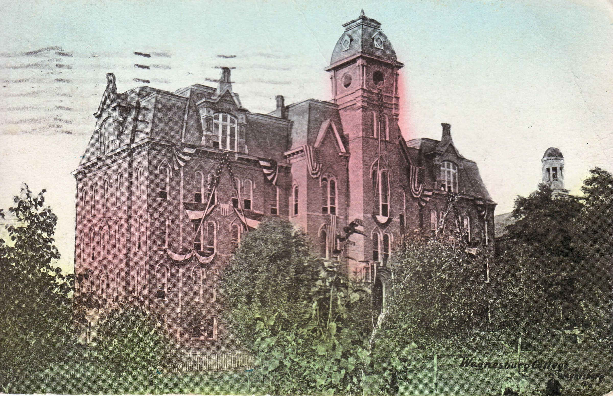 Source Citation: Miller Hall and Hanna Hall on the Waynesburg College campus; item no. GCHS-AN027-0001-0135, Greene County Historical Society Collection, Greene Connections Archives Project (www.GreeneConnections.com).