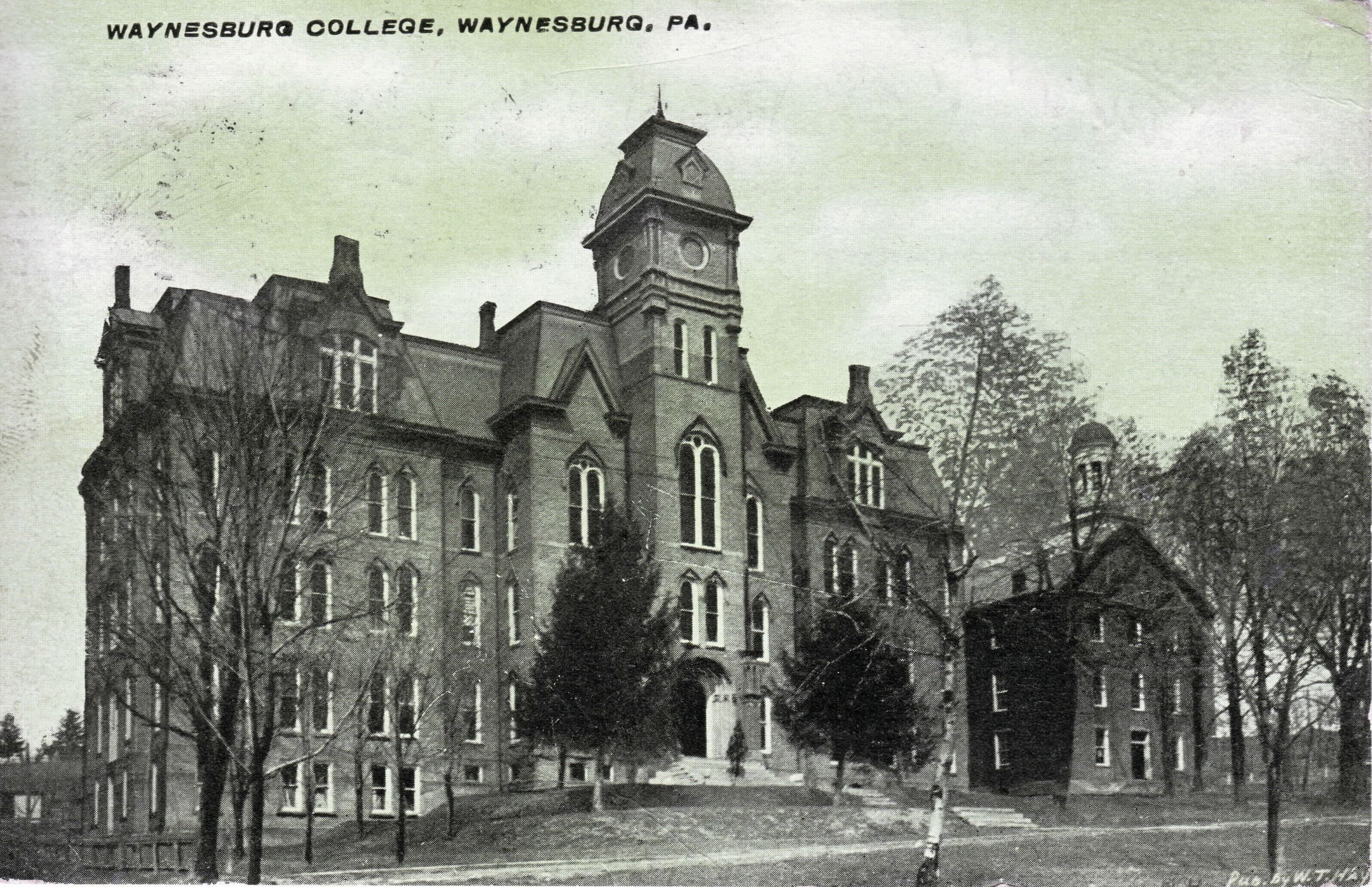 Source Citation: Miller Hall and Hanna Hall on the Waynesburg College campus, item no. GCHS-AN027-0001-0133, Greene County Historical Society Collection, Greene Connections Archives Project (www.GreeneConnections.com).