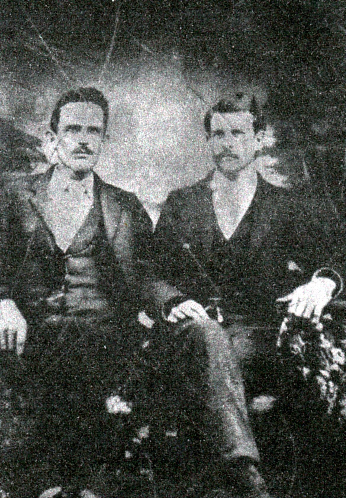 Source Citation: Millikin Album, Photo 26 - [Left-Right]: James Monroe Knight and John Ullom, item no. MARS-AN001-0026, Bernice Ellen (Knight) Marshall Collection, shared by Tom Marshall, Greene Connections Archives Project (www.GreeneConnections.com).
