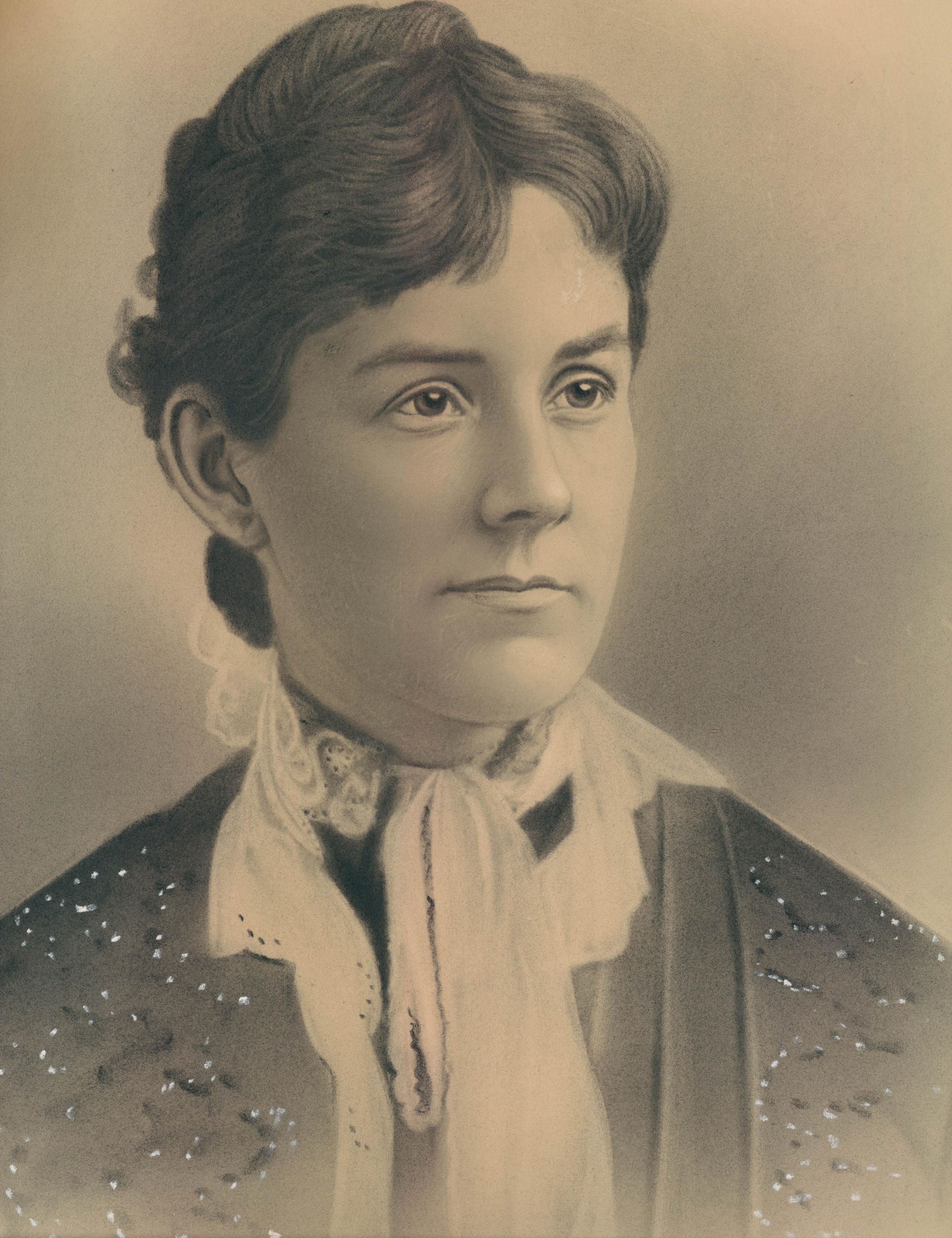 Charcoal enlargement of Minnie J. N. (Buckingham) Carpenter [1867-1895] - wife of Dr. Thomas Carpenter, daughter of Simon "Samuel" Buckingham and Mary Ann Iams.