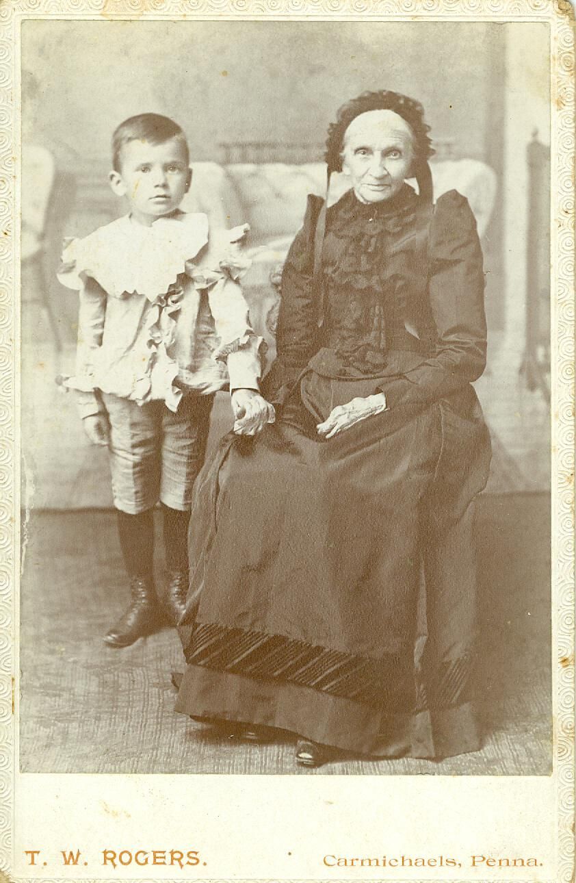 Source Citation: Mitchener Album 01, Photo 51 - Mary (Way) Mitchener with her great-grandson John Hershey Byerly, item no. BAID-AN001-0051, William M. Baily Collection, shared by Daniel M. Baily, Greene Connections Archives Project (www.GreeneConnections.com).