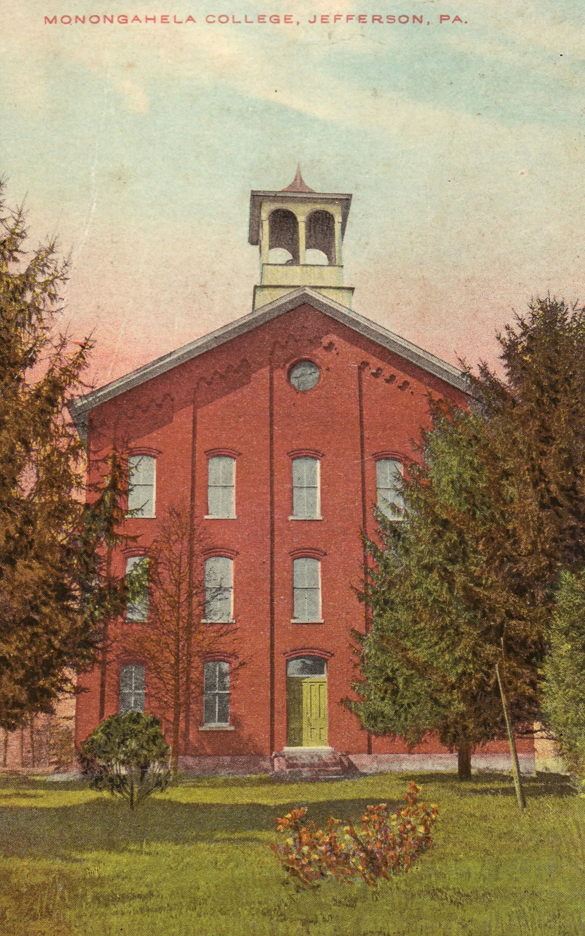SOURCE CITATION: Real-photo postcard of Monongahela College in Jefferson, Jefferson Township, Greene County, Pennsylvania; circa 1900-1920; item no. RUSH-AN001-0007-0005, Walter Markiewich Postcard Collection, shared by Brice and Linda Rush; Greene Connections Archives Project (GreeneConnections.com).