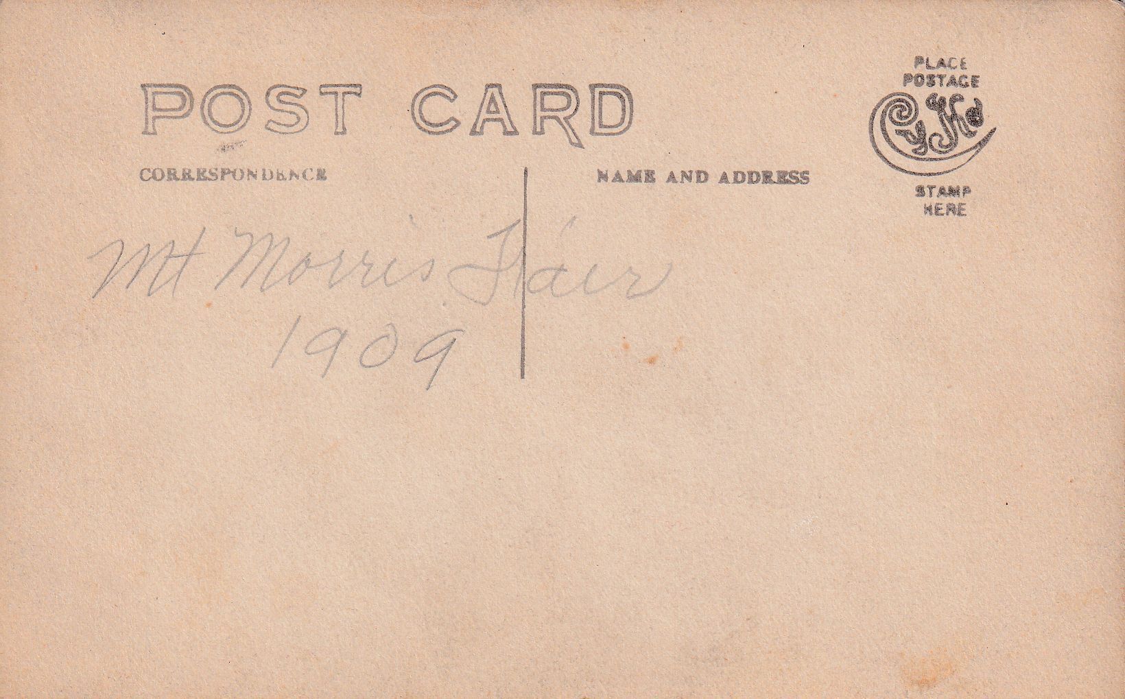 SOURCE CITATION: Mount Morris Fair in Mount Morris, Perry Township, Greene County, Pennsylvania; dated 1909; item no. MILB-AN001-0005-0008, Mary (Vance) McCann Collection, shared by her grandson, William Marshall Miller; Greene Connections Archives Project (www.GreeneConnections.com).