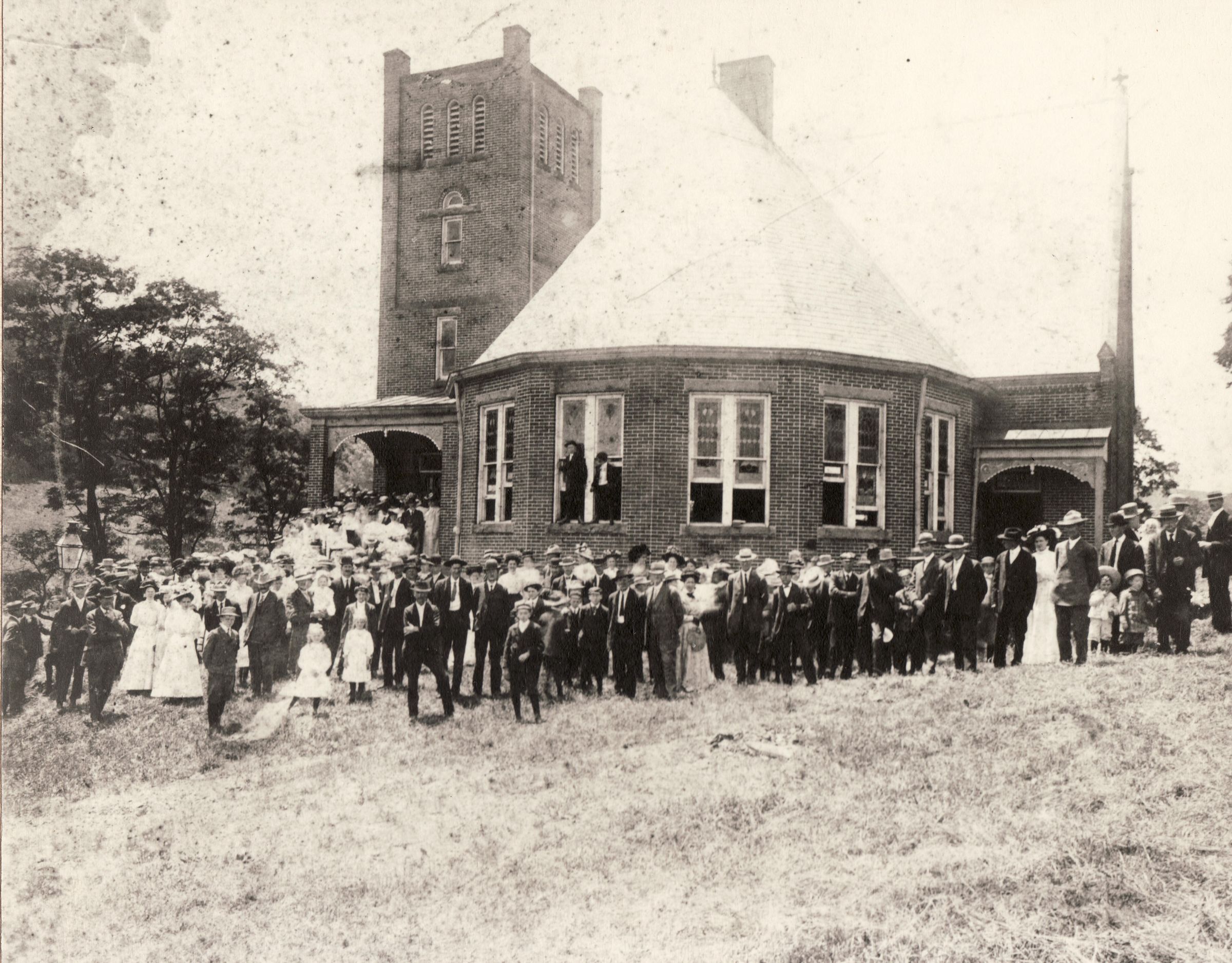 Source Citation: Muddy Creek Church, located on Route 21, near Khedive, Jefferson Township, Greene County, Pennsylvania; circa 1900-1920; item no. AULD-AN006-0001, Miscellaneous Series, Pratt-Auld Collection, shared by Julia Kathryn Johnson, Greene Connections Archives Project (www.GreeneConnections.com).