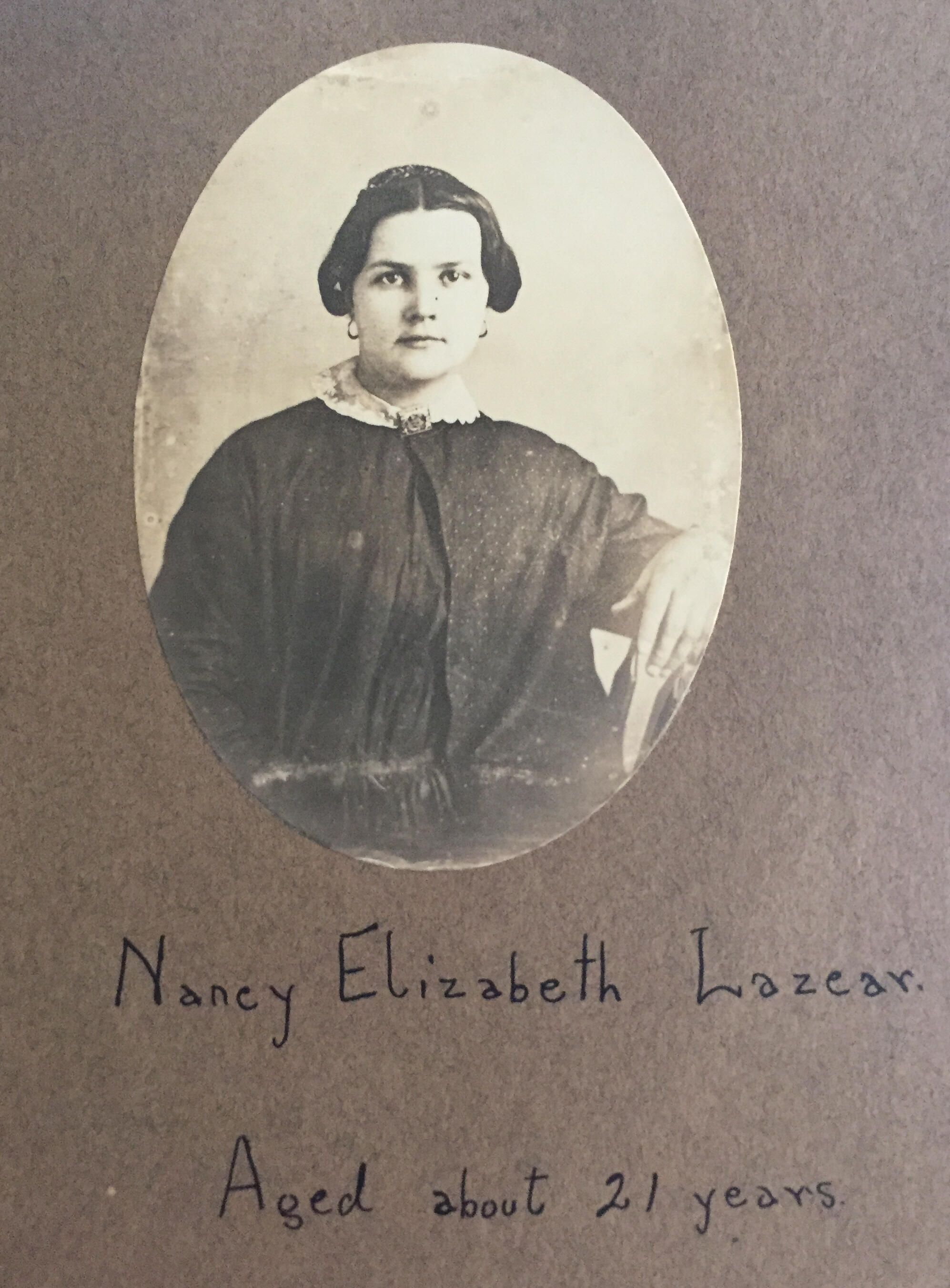 Source Citation: Nancy Elizabeth (Lazear) Throckmorton [1828-1906], item no. THRJ-AN001-0008, Throckmorton-Bentley Genealogy Series, Dr. Jeannette Franc Throckmorton Collection, Greene Connections Archives Project (www.GreeneConnections.com).