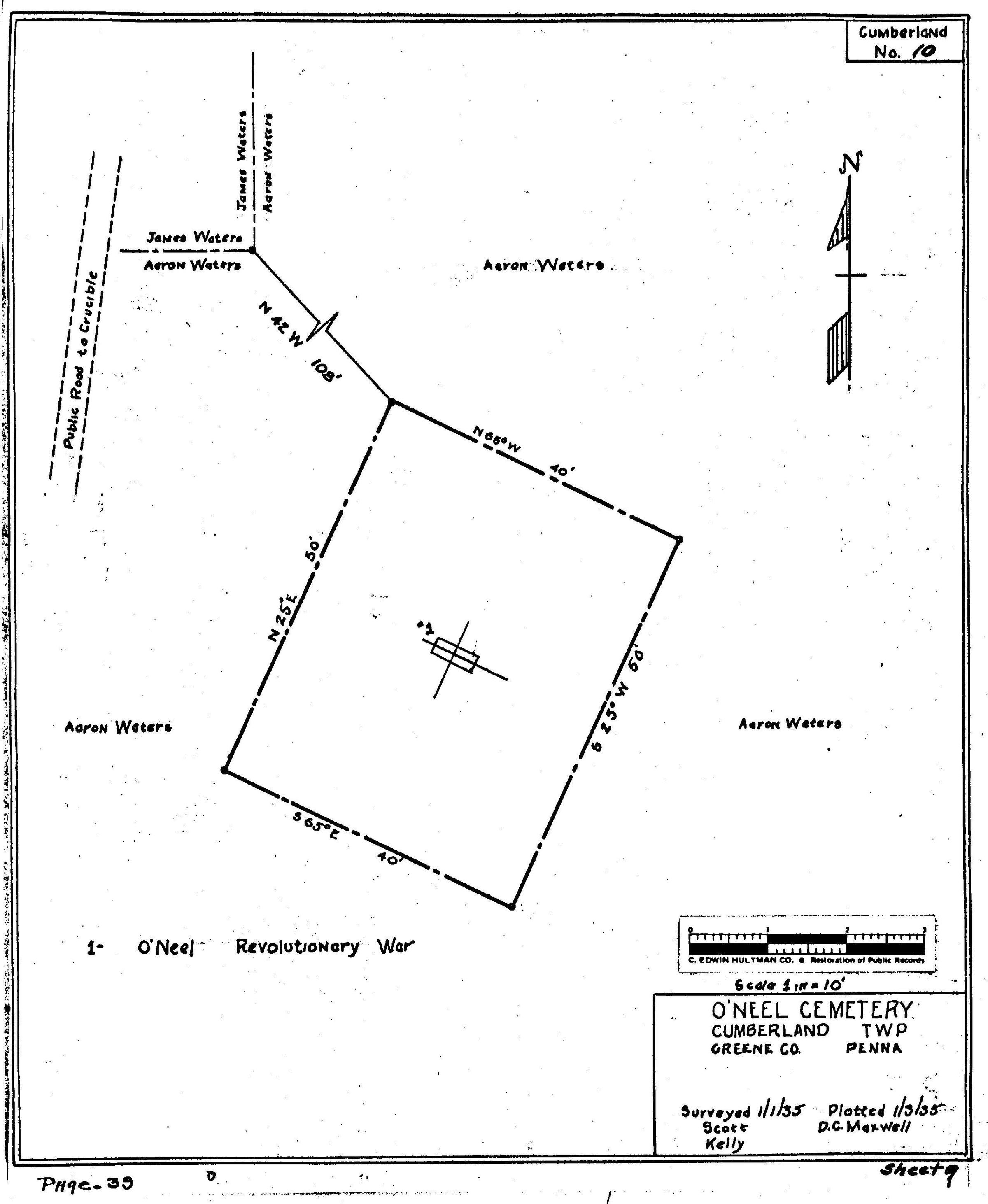 Source Citation: WPA Cemetery Plat - Pennsylvania - Greene County - Cumberland Township - Neel Cemetery (1935), item no. 2016.3.177, Cemetery Plat (WPA) Collection, surveyed by Works Projects Administration, copy on file at the Clerk of Courts Office, Greene County Courthouse, Greene Connections Archives Project (www.GreeneConnections.com).