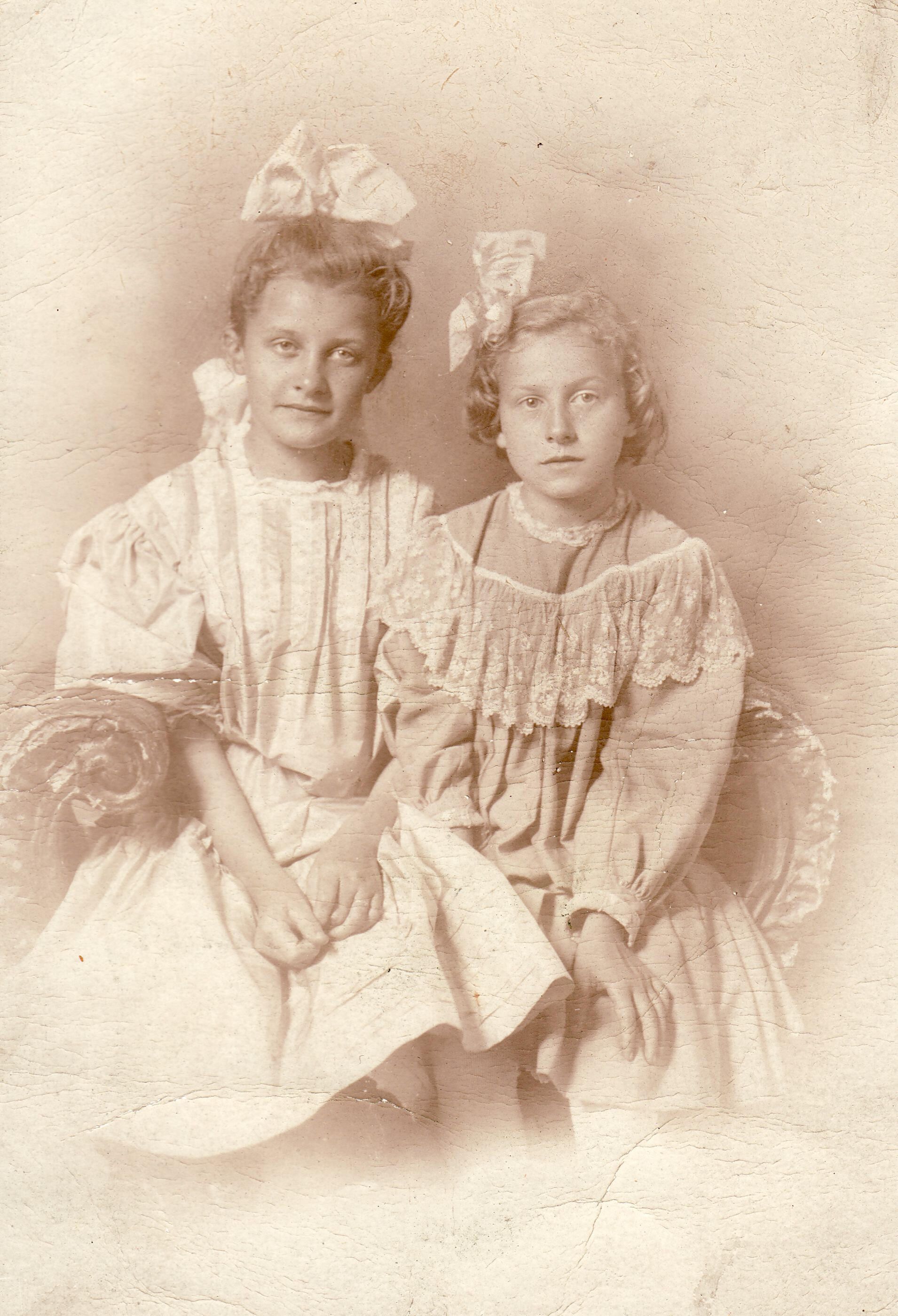 Source Citation: [Left-Right]: Nella Sophia (Hoskinson) Baily and Clare (Hoskinson) Garside, item no. CAND-AN011-0001-0014, Hoskinson Series donated by Karen Maset, Candice Lynn Buchanan Collection, Greene Connections Archives Project (www.GreeneConnections.com).