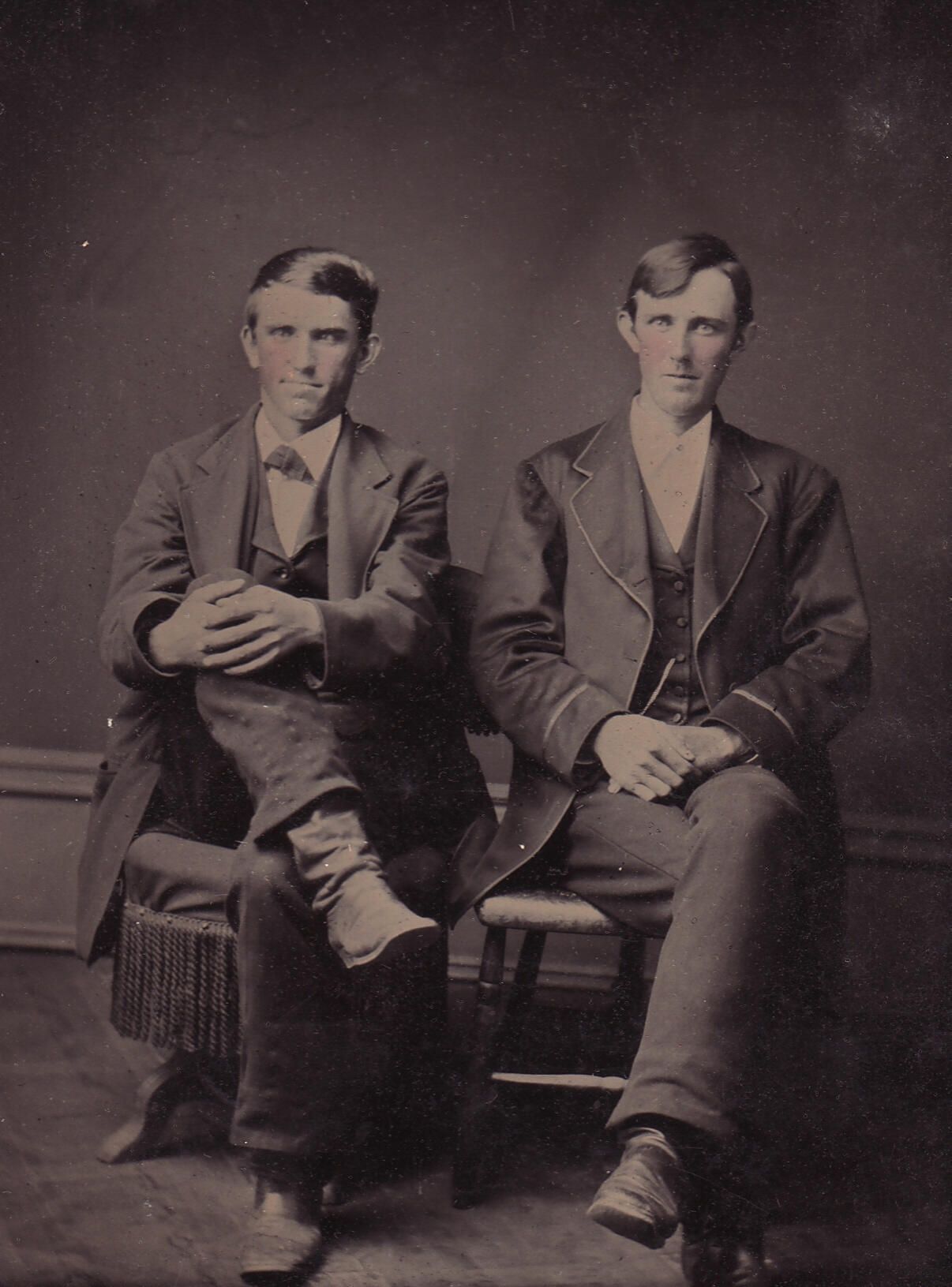 Though this album was scanned in the order found, it's original order was not intact. Numerous identified photo slots lay empty due to an earlier viewer having removed them. Other photos were slid into slots where they may not have originally been placed. Identified names of missing photos include: Brown, Clovis, Driver, Fry, Granlee, Hennen, King, Moore, Patton, Phillips, Spragg, Stewart, Wells.