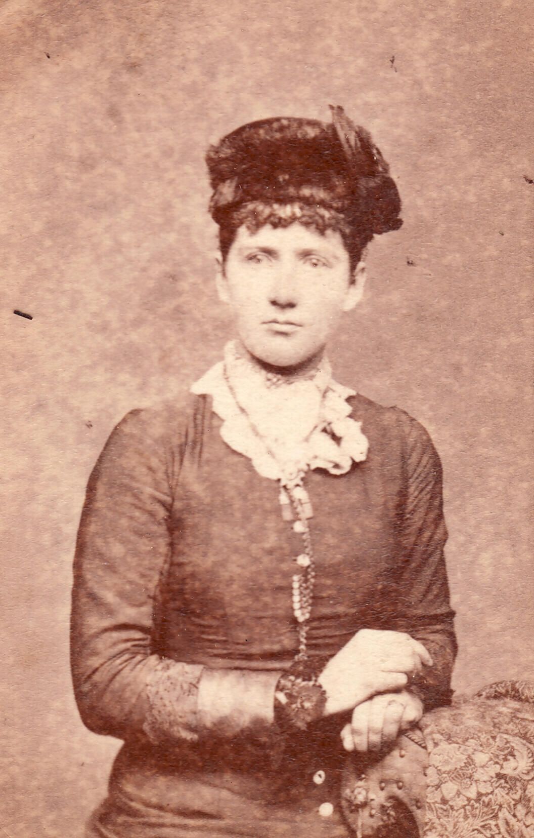 The photograph is in a Carte-de-Visite size photograph album donated by Erma (Roberts) Nichols - wife of Albert M. "Bert" Nichols. Based on identified names, the album appears to be from the Nichols family. Albert M. "Bert" Nichols [1881-1943] was a son of Josephus S. Nichols and Emma Florence Spragg.