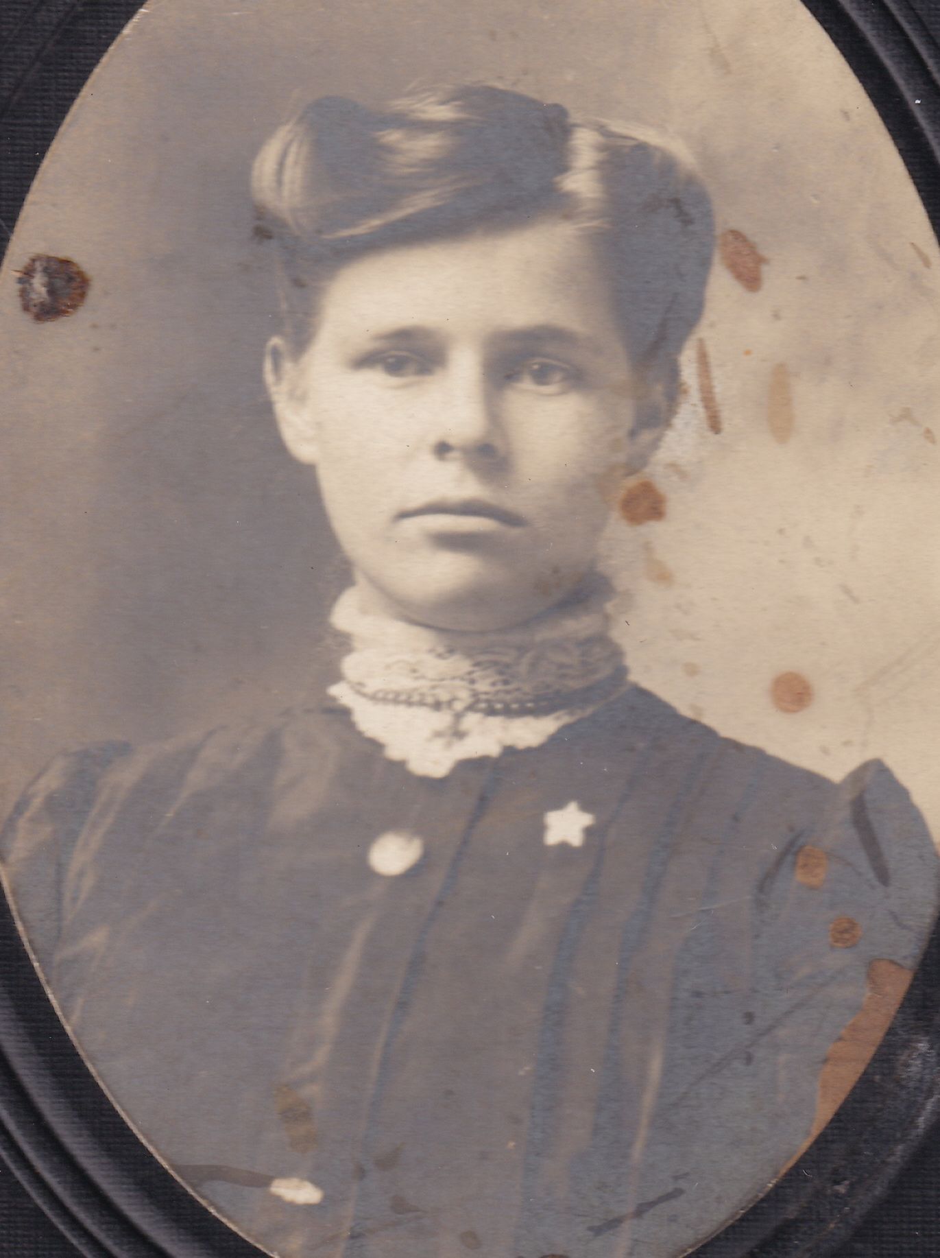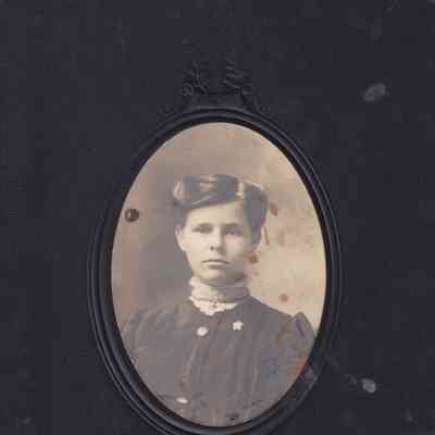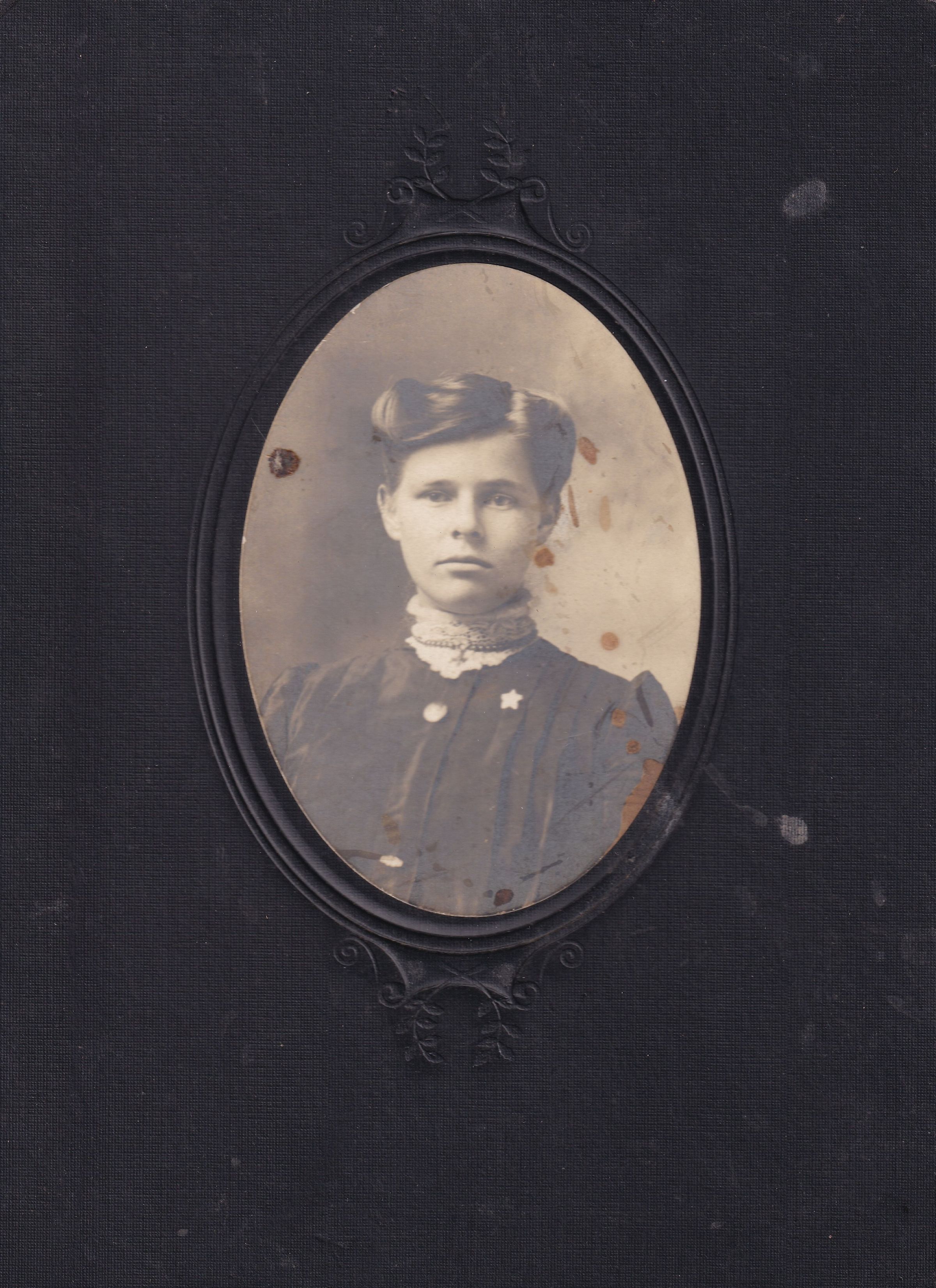 SOURCE CITATION: Nora (Rush) Kuhn [1886-1973]; circa 1900, image by Frank M. Sellers Home Gallery, Waynesburg, Pa.; item no. CMBL-AN004-0003-0004, George Lindsey Cole Series, Matt W. Cumberledge Collection; Greene Connections Archives Project (GreeneConnections.com).