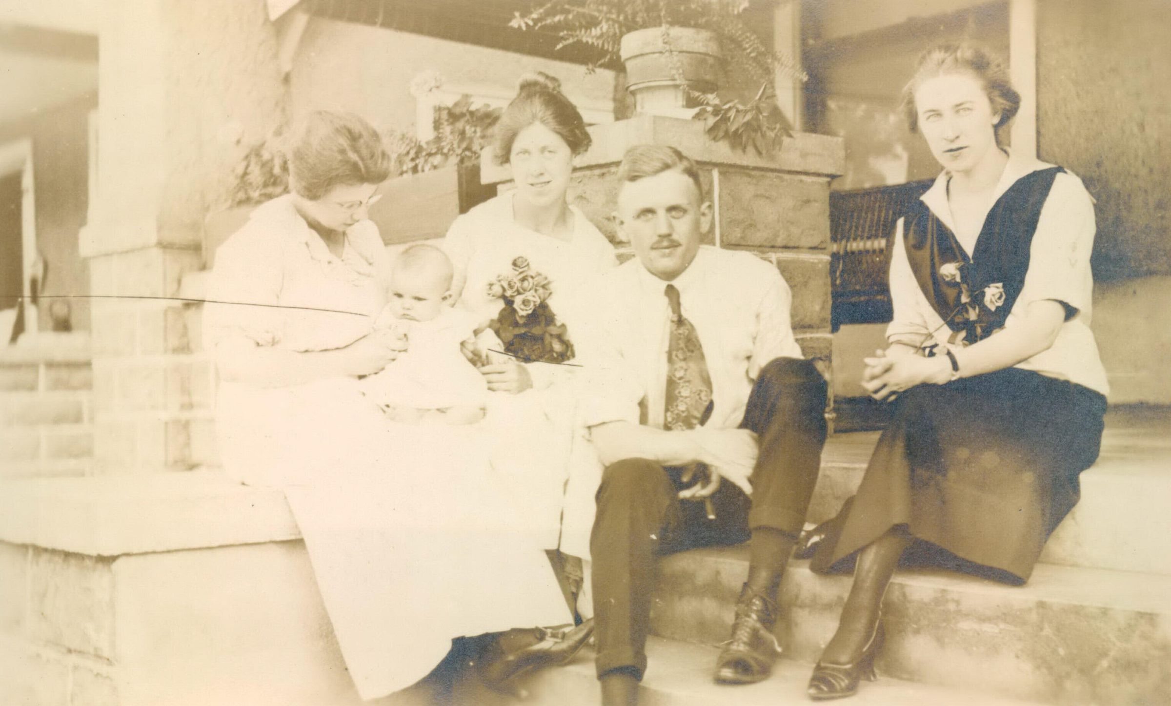 [Left-Right]: Unidentified woman holding baby, Marie (Adamson) Minor, Otha Claire Minor, Unidentified.