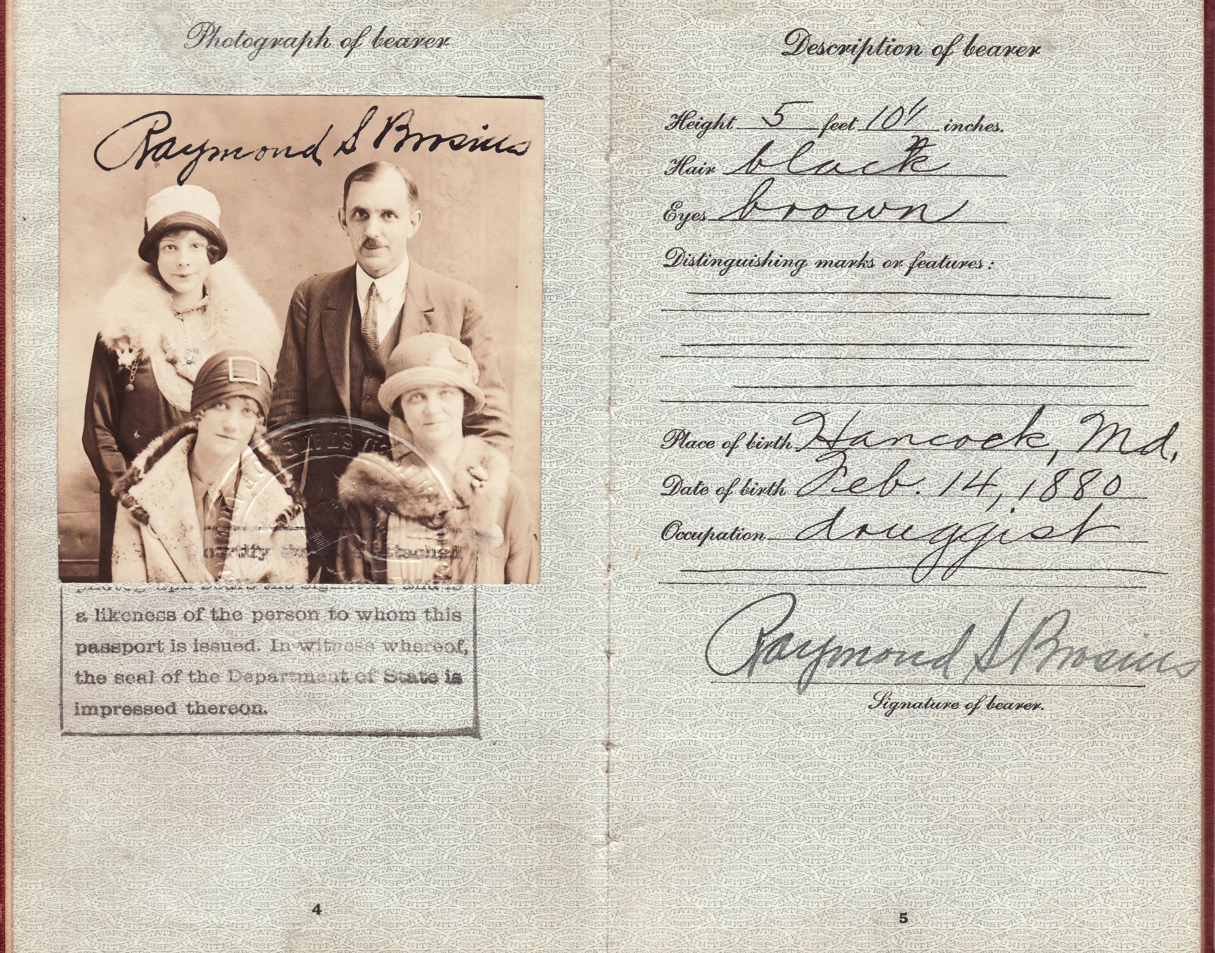 Source Citation: Passport of Raymond Samuel Brosius; item no. SWAN-AN001-0029, Suzanne Wylie Collection; Greene Connections Archives Project (GreeneConnections.com).