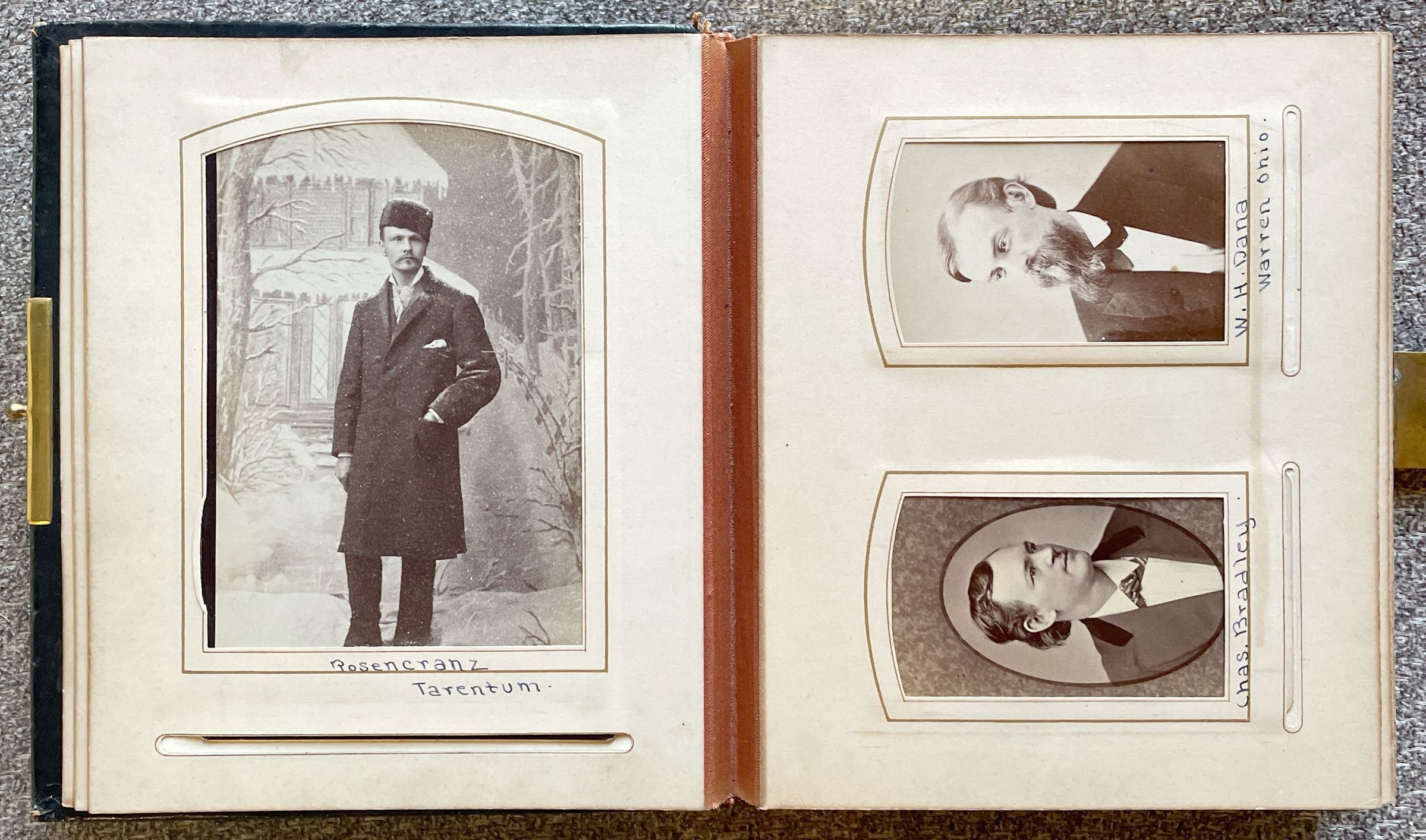 Handwritten inscription on album page reads, "Chas. Bradley."