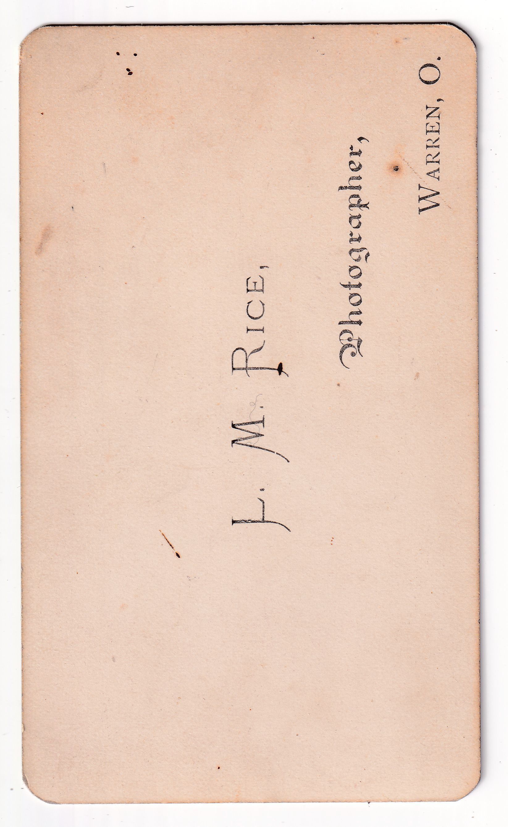 Original, professional photograph from L. M. Rice, Photographer, Warren, O.Photograph Details