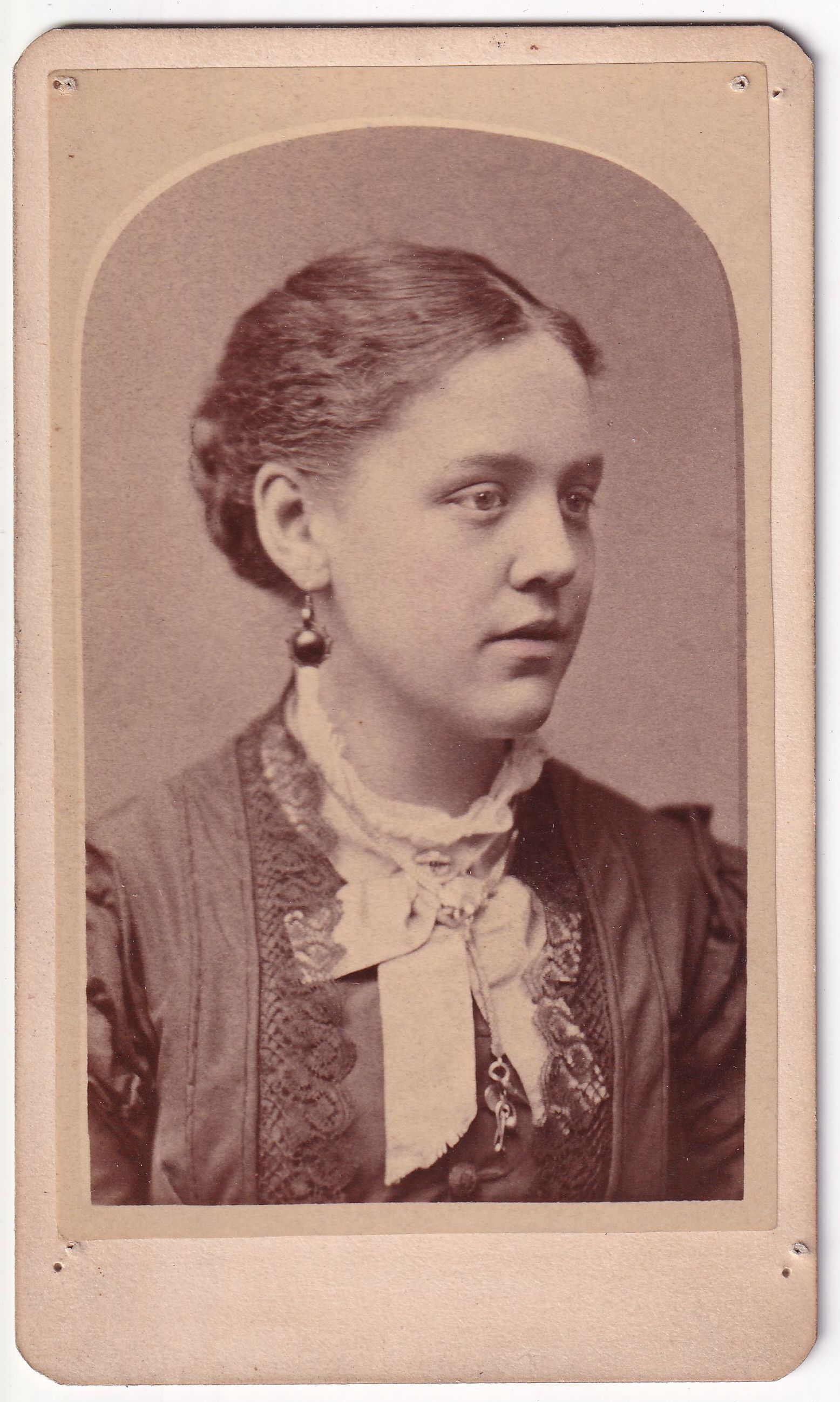 Carte-de-visite photograph of Lillian (Robbins) Harrah [1859-1928], of Newton Falls, Ohio.