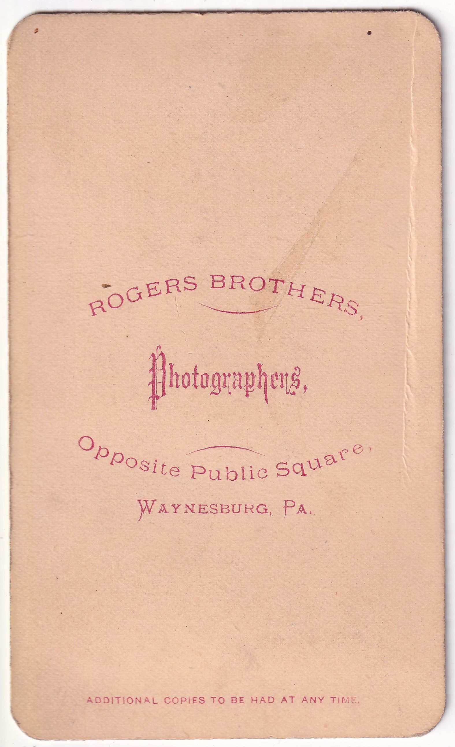 Original, professional photograph from Rogers Brothers, Photographers, Opposite Public Square, Waynesburg, Pa.Photograph Details