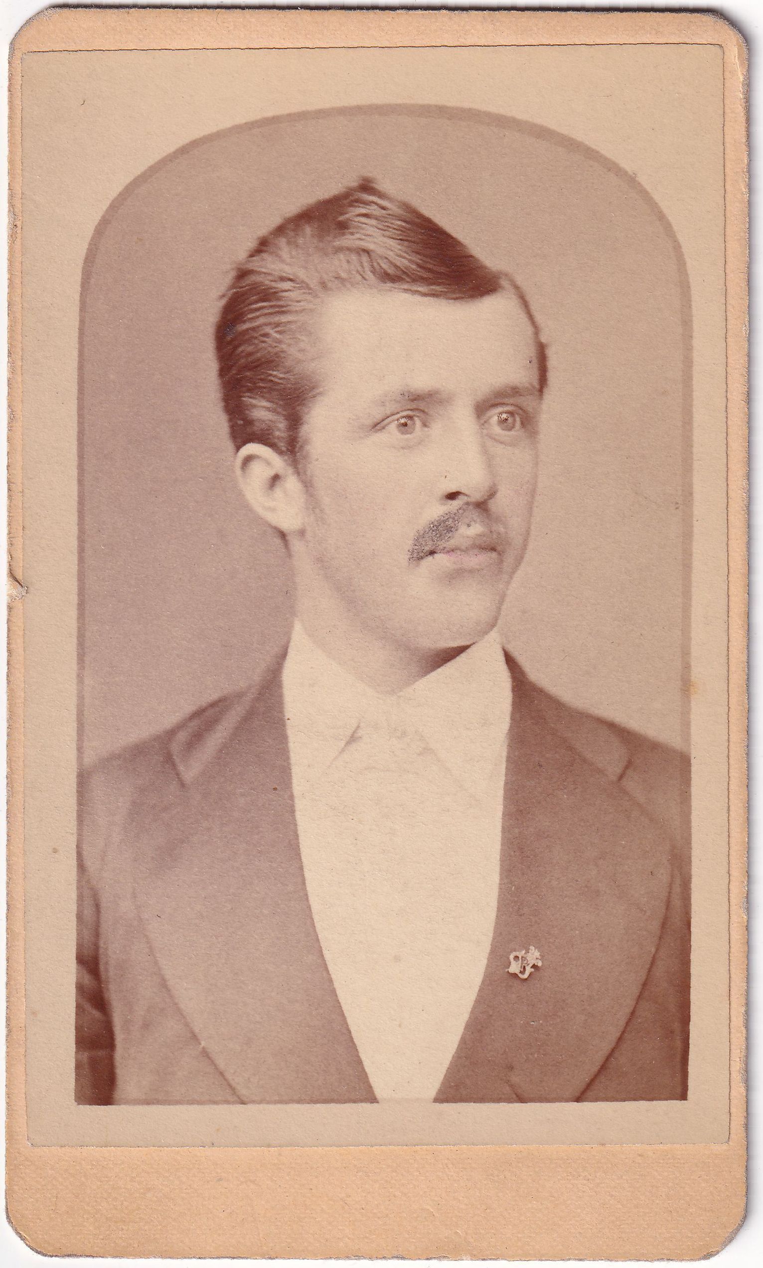 Carte-de-visite photograph of James M. Bergan (a/k/a James S. Bergen), of Franklin, Venango County, Pennsylvania.