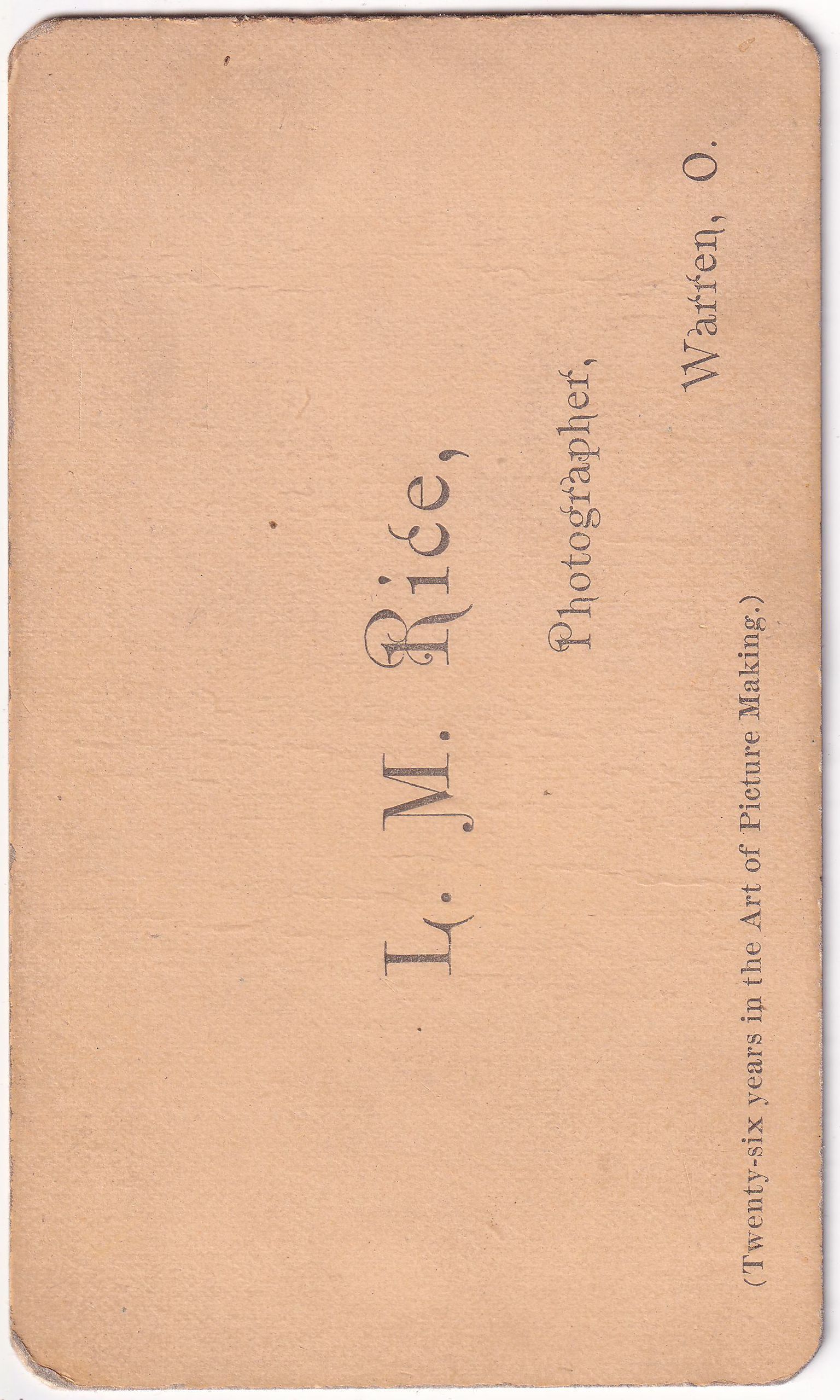 Original, professional photograph from L. M. Rice, Photographer, Warren, O.Photograph Details