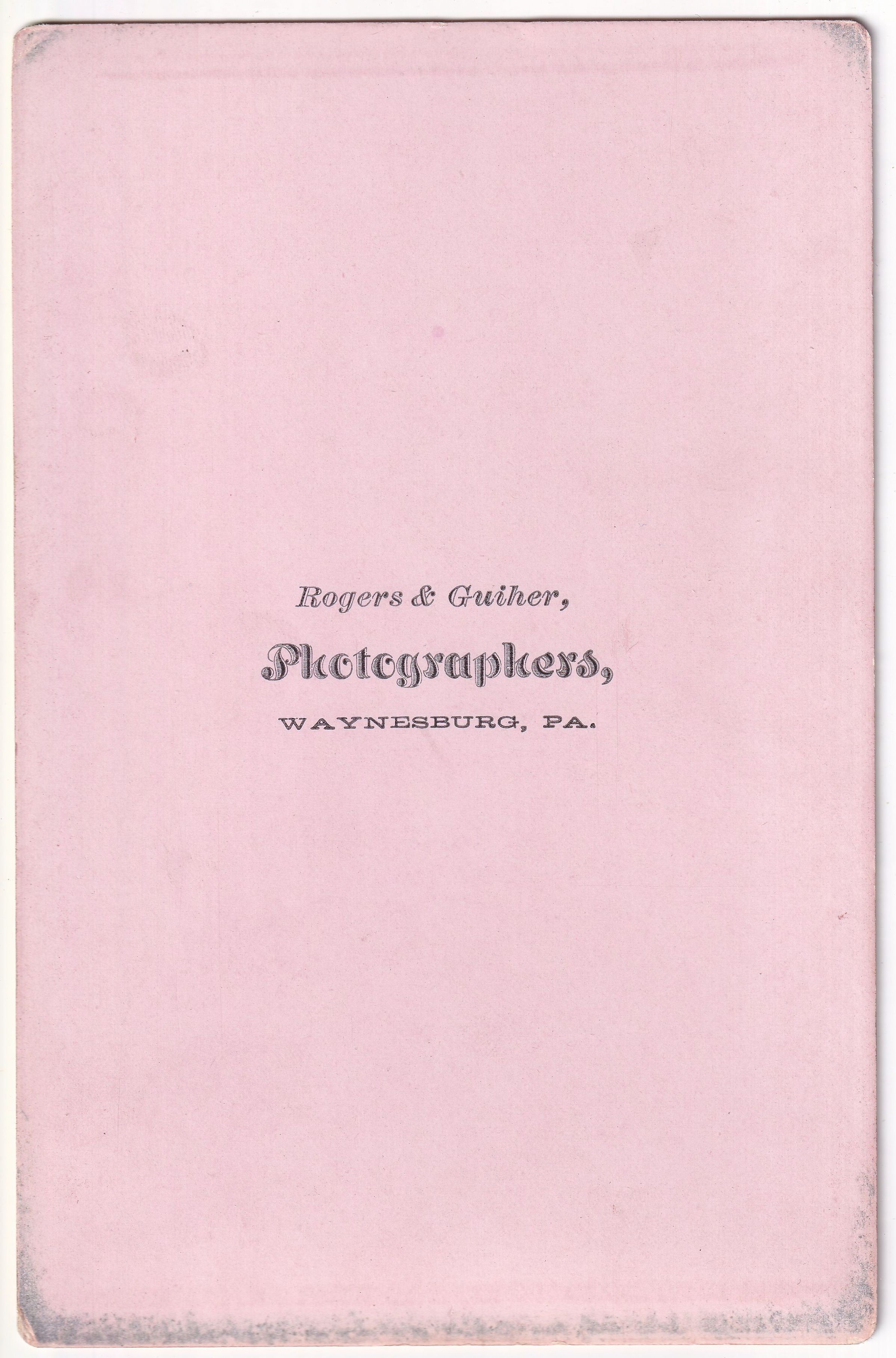 Source Citation: Pauley-Thompson Album, Photo 39 - Mary (Pauley) Riggle [1881-1907]; circa 1880-1890, image by Rogers & Guiher, Photographers, Waynesburg, Pa.; item no. CGSP_AN002_0039, Cornerstone Genealogical Society Collection; Greene Connections Archives Project (GreeneConnections.com).