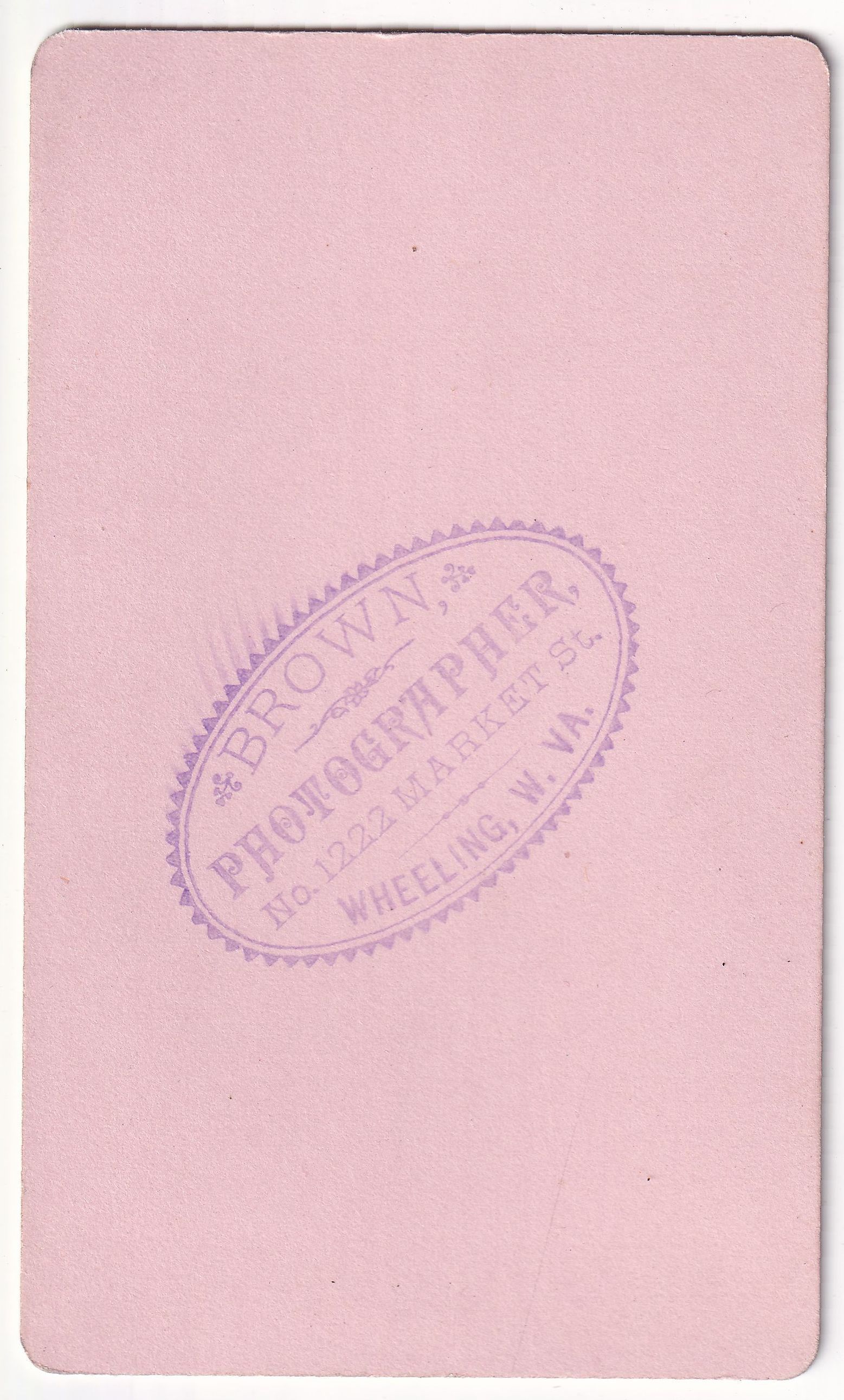 Original, professional photograph from Brown, Photographer, No. 1222 Market St., Wheeling, W. Va.Photograph Details