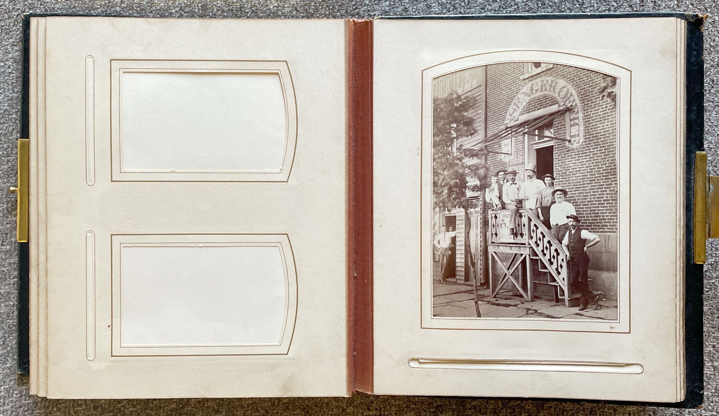 The Pauley-Thompson Album once belonged to the family of John Flenniken Pauley [1858-1929] and his wife, Margaret Virginia Thompson [1855-1937]. The album was found in a building set for demolition and was donated to the Cornerstone Genealogical Society (144 E. Greene St., PO Box 547; Waynesburg, Pennsylvania 15370). Shared with the Greene Connections: Greene County, Pennsylvania Archives Project in 2007.
