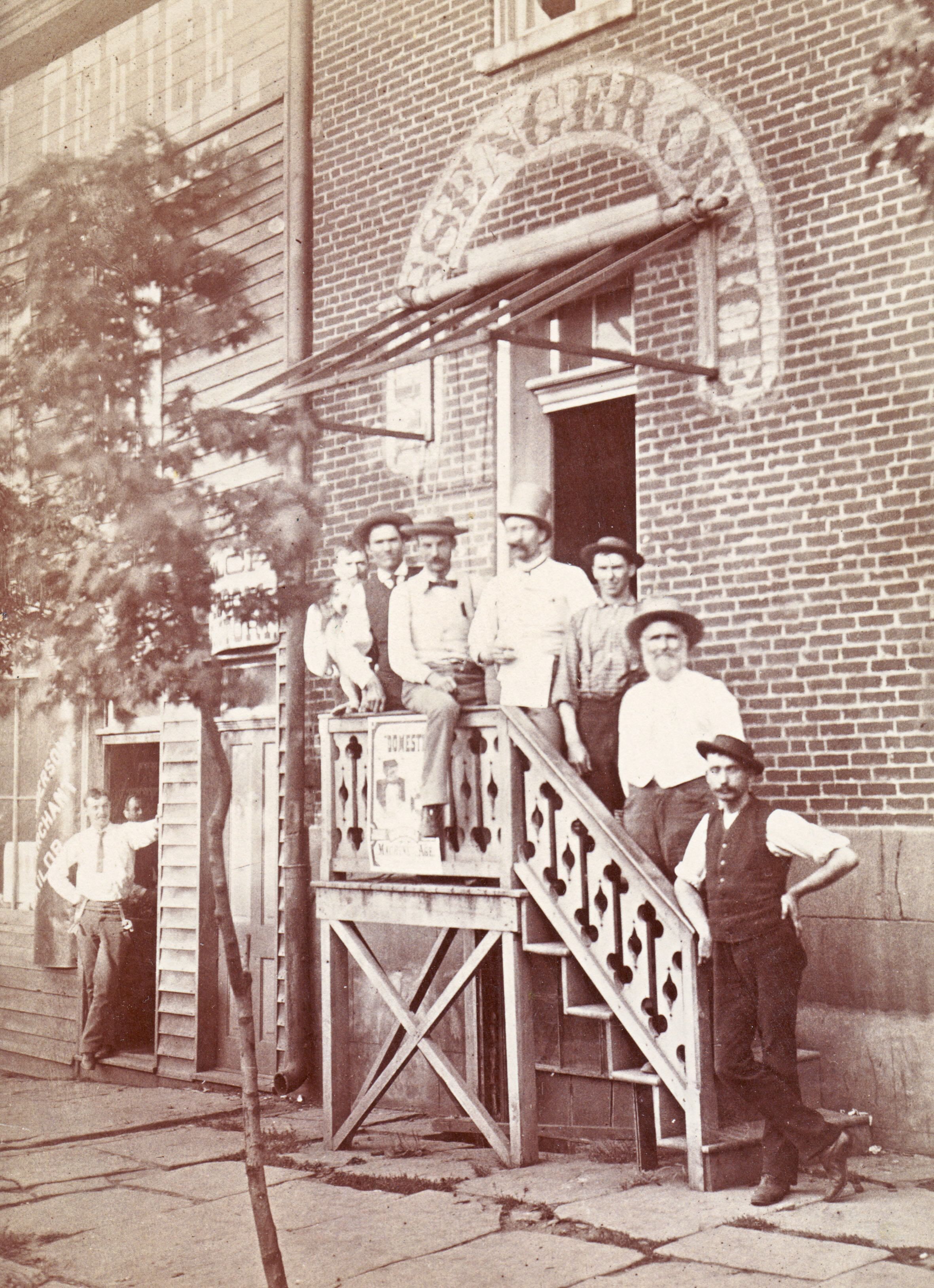 At the foot of the stairs is John Flenniken Pauley Sr. [1858-1929] and above him with the beard is his father William Thompson Hays Pauley [1820-1897].