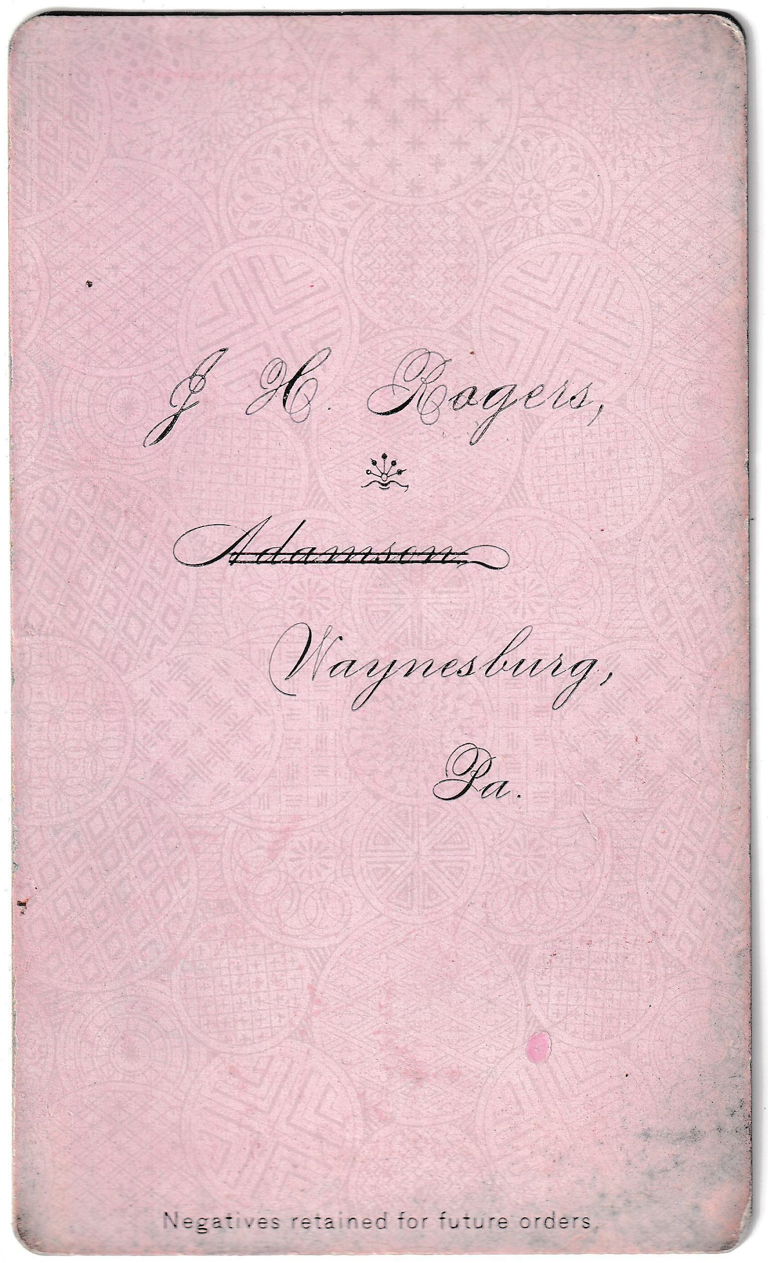 Source Citation: Pauley-Thompson Album, Photo 49 - William Thompson Hays Pauley [1884-1961]; circa 1885-1890, image by J. H. Rogers, Waynesburg, Pa.; item no. CGSP_AN002_0049, Cornerstone Genealogical Society Collection; Greene Connections Archives Project (GreeneConnections.com).
