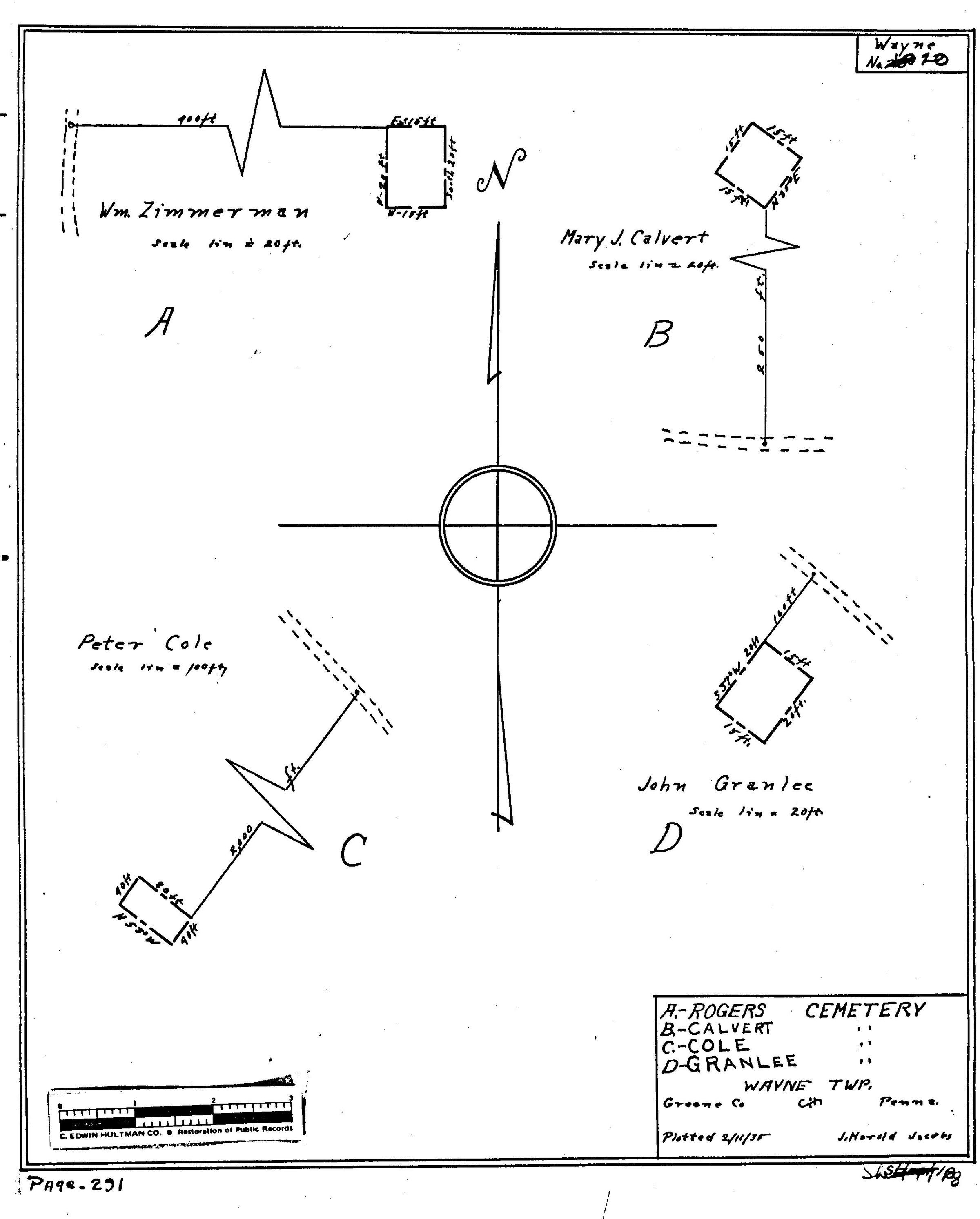 SOURCE CITATION: WPA Cemetery Plat - Pennsylvania - Greene County - Wayne Township - Peter Cole Property Cemetery (1935); item no. 2016.3.294, Cemetery Plat (WPA) Collection, surveyed by Works Projects Administration, copy on file at the Clerk of Courts Office, Greene County Courthouse; Greene Connections Archives Project (GreeneConnections.com).