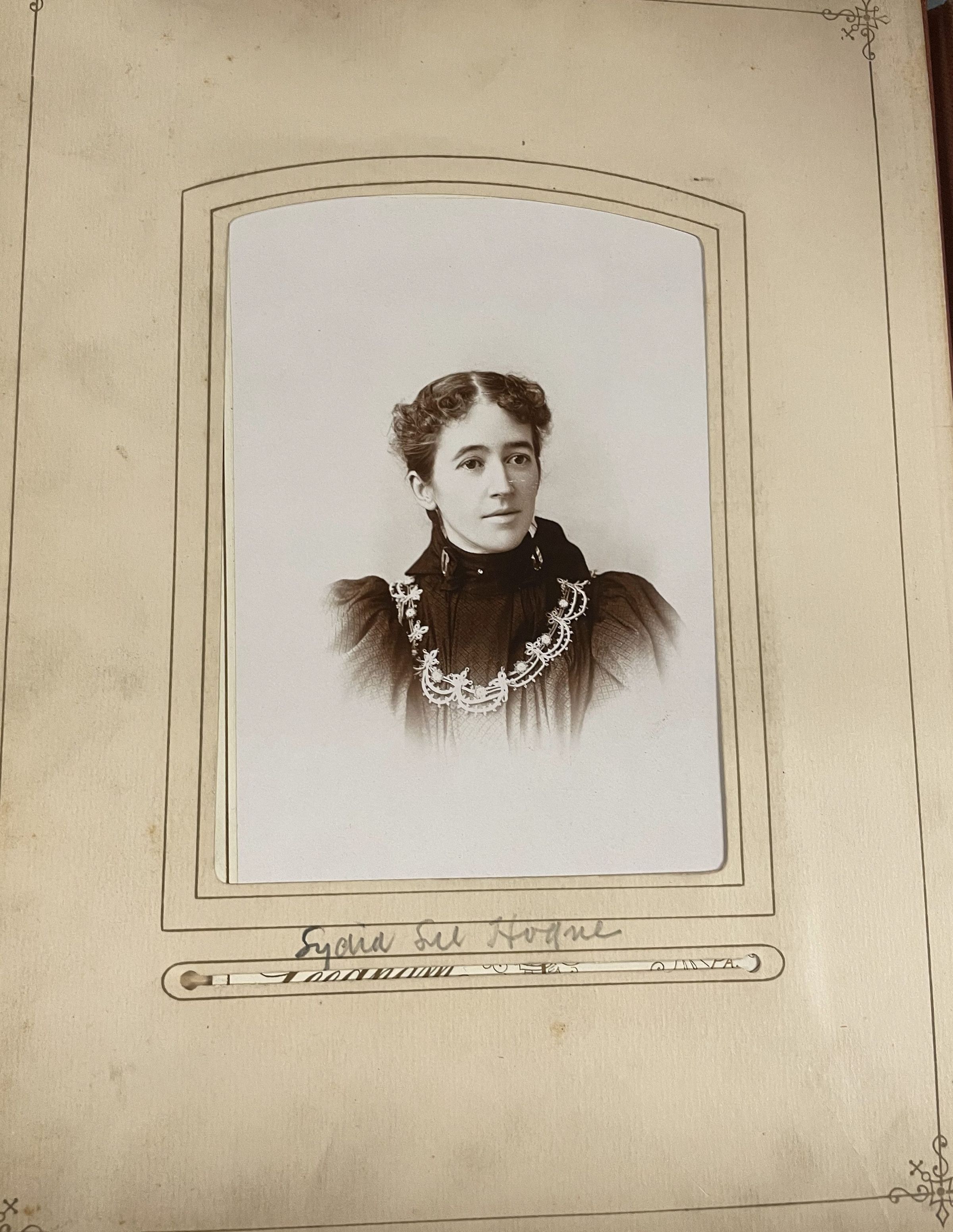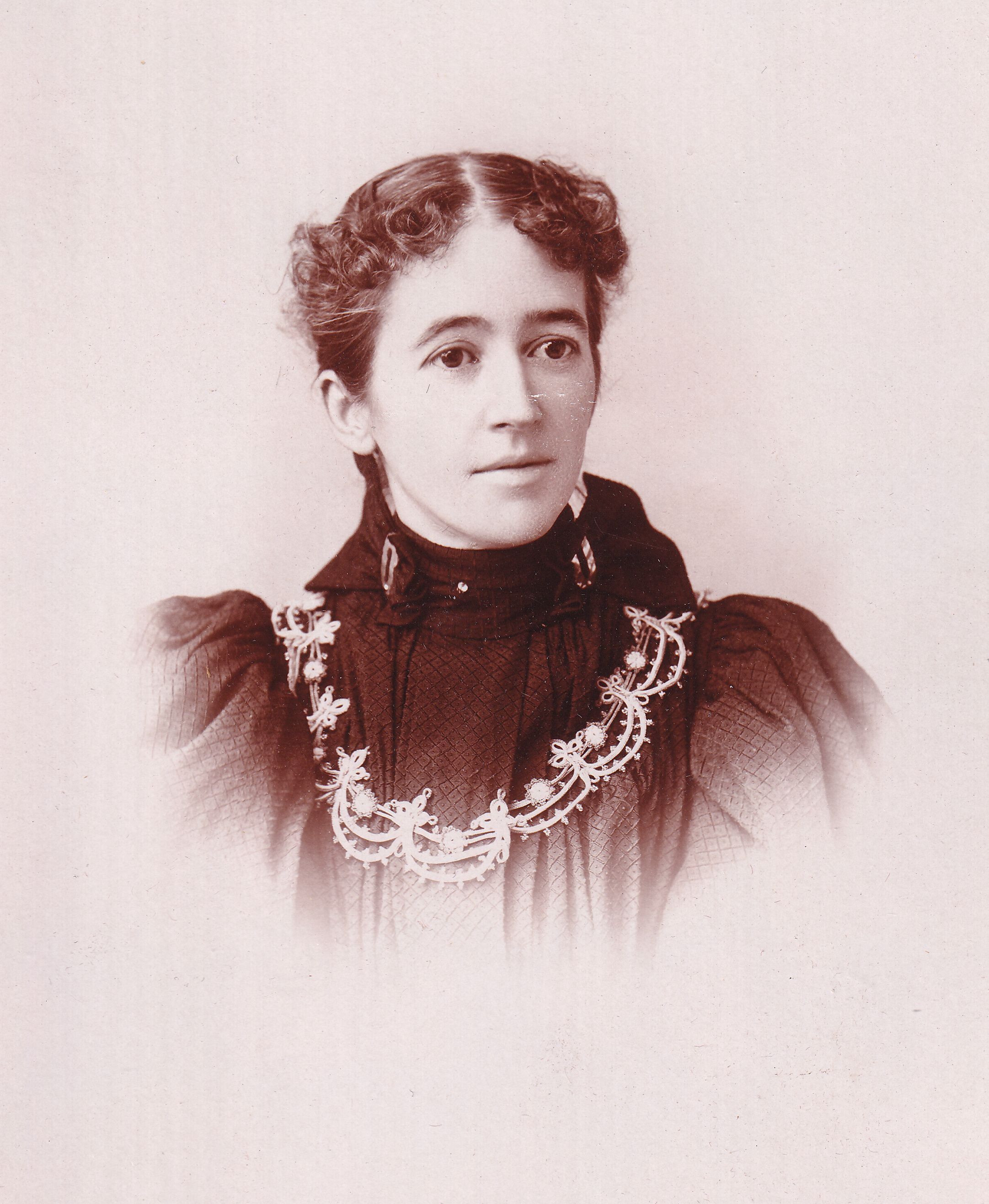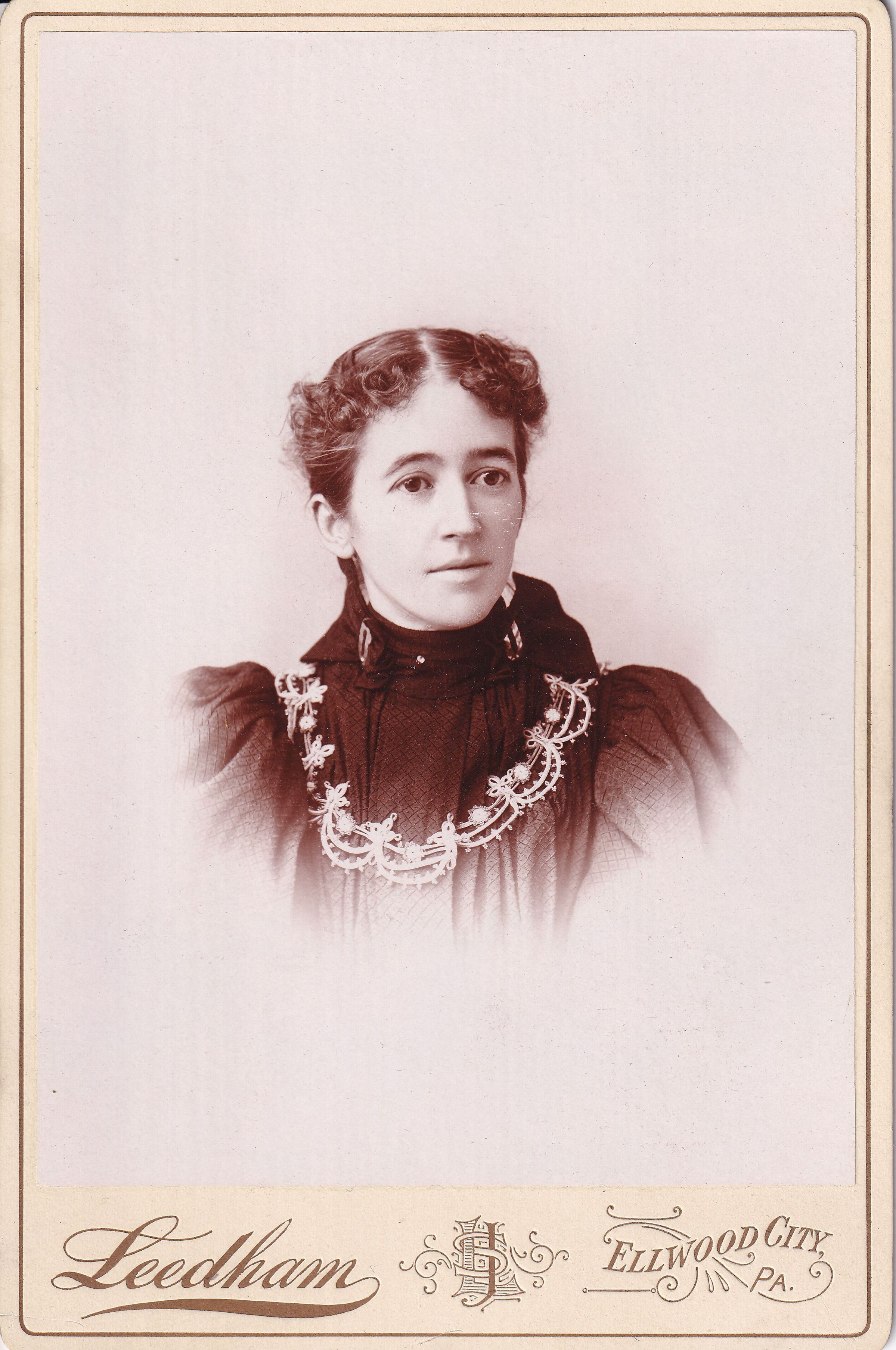 SOURCE CITATION: Phelan-Walker Album, Photo 13 - Lydia Lee (Evans) Hoge [1856-1900]; circa 1890-1900, image by Leedham, Ellwood City, Pa.; item no. WAYN-AN008-0013, Waynesburg University Paul R. Stewart Museum Collection, Greene Connections Archives Project (www.GreeneConnections.com).