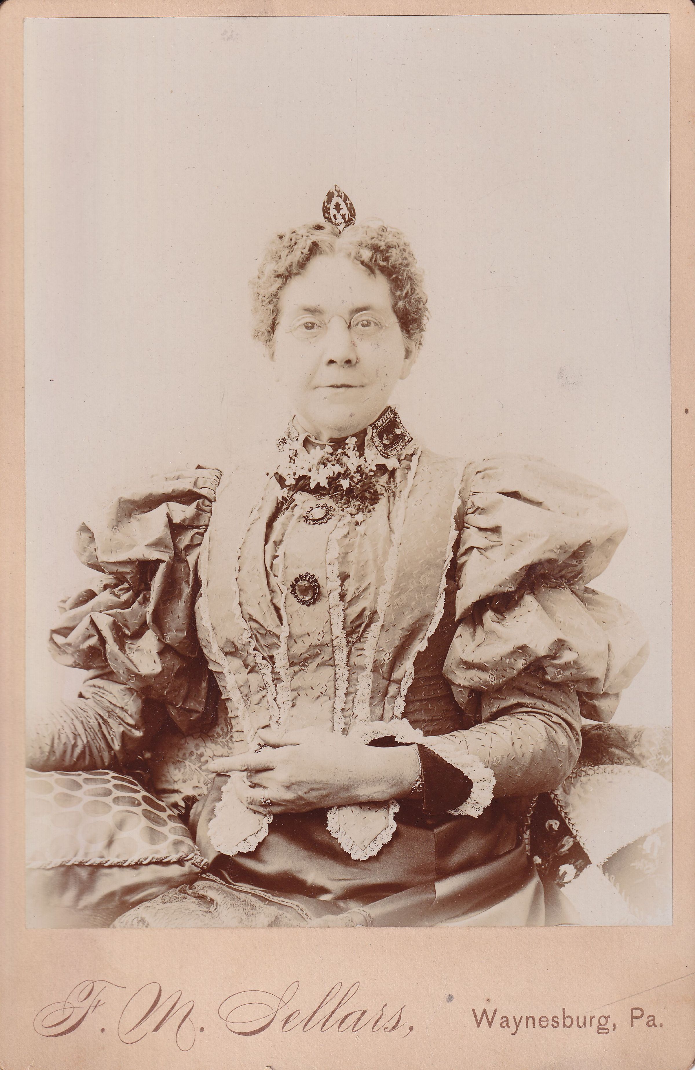 SOURCE CITATION: Phelan-Walker Album, Photo 17 - Nancy (Scott) Hertig [1841-1906]; circa 1890-1900, image by F. M. Sellars, Waynesburg, Pa.; item no. WAYN-AN008-0017, Waynesburg University Paul R. Stewart Museum Collection, Greene Connections Archives Project (www.GreeneConnections.com).