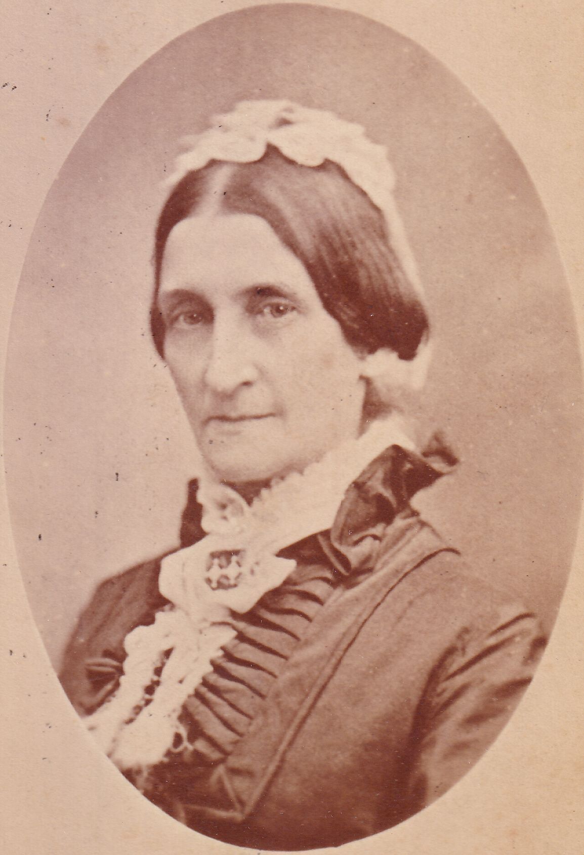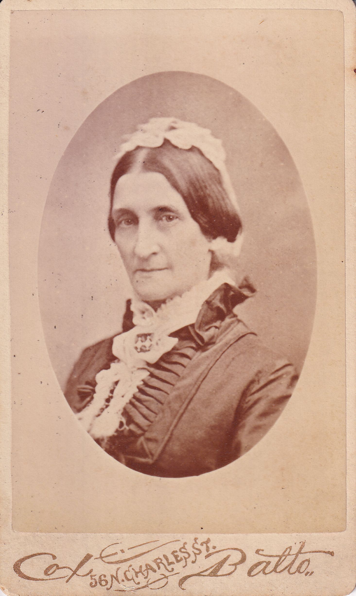 SOURCE CITATION: Phelan-Walker Album, Photo 29 - Sarah (Legare) Walker [1819-1897]; circa 1870-1880, image by Cox, 56 N. Charles St., Balto. [Baltimore]; item no. WAYN-AN008-0029, Waynesburg University Paul R. Stewart Museum Collection, Greene Connections Archives Project (www.GreeneConnections.com).