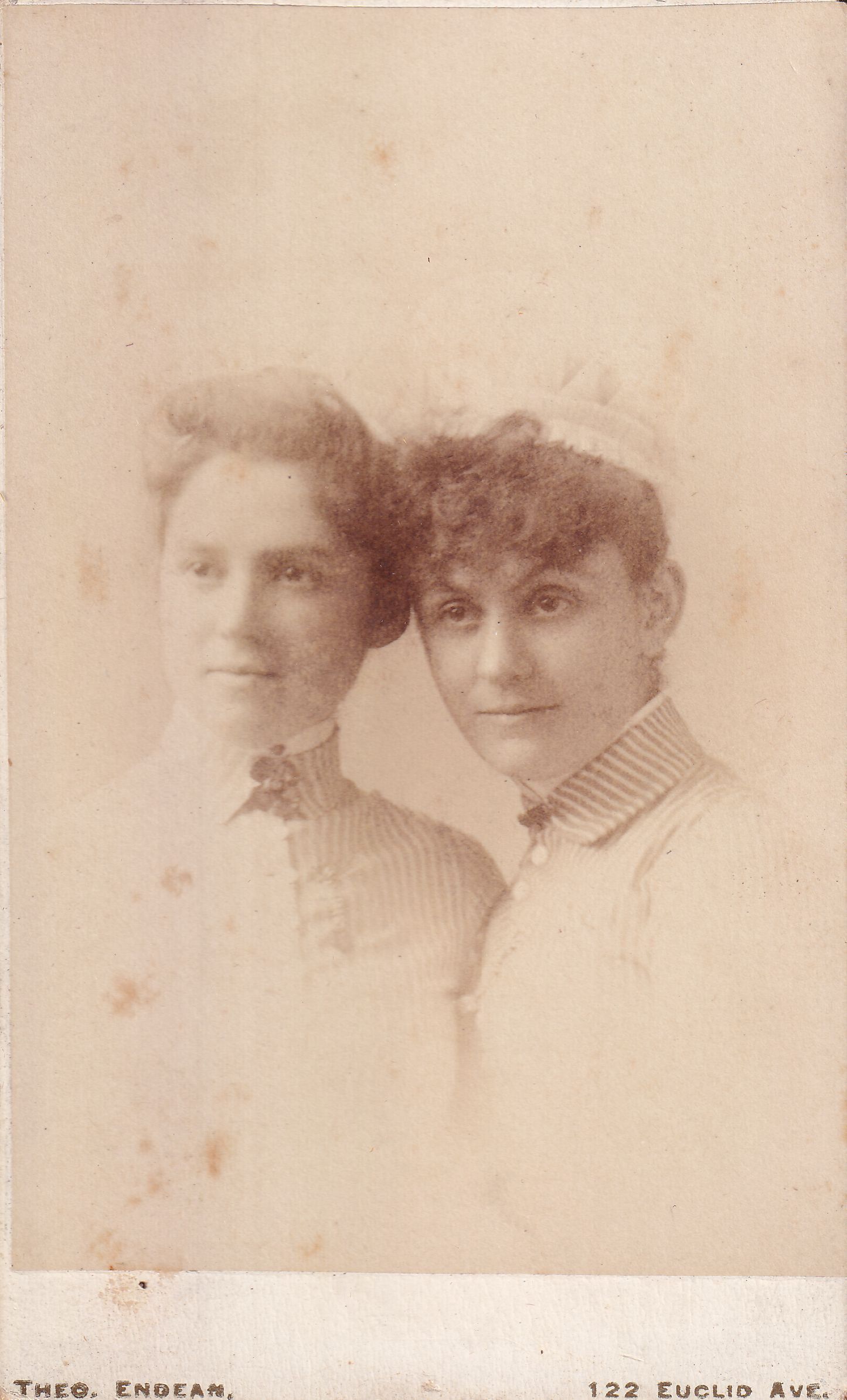SOURCE CITATION: Phelan-Walker Album, Photo 36 - [Left-Right] Rebecca Arabelle "Belle" Rinehart [1863-1956] and Unidentified; circa 1880-1890, image by Theo. Endean, 122 Euclid Ave.; item no. WAYN-AN008-0036, Waynesburg University Paul R. Stewart Museum Collection, Greene Connections Archives Project (www.GreeneConnections.com).
