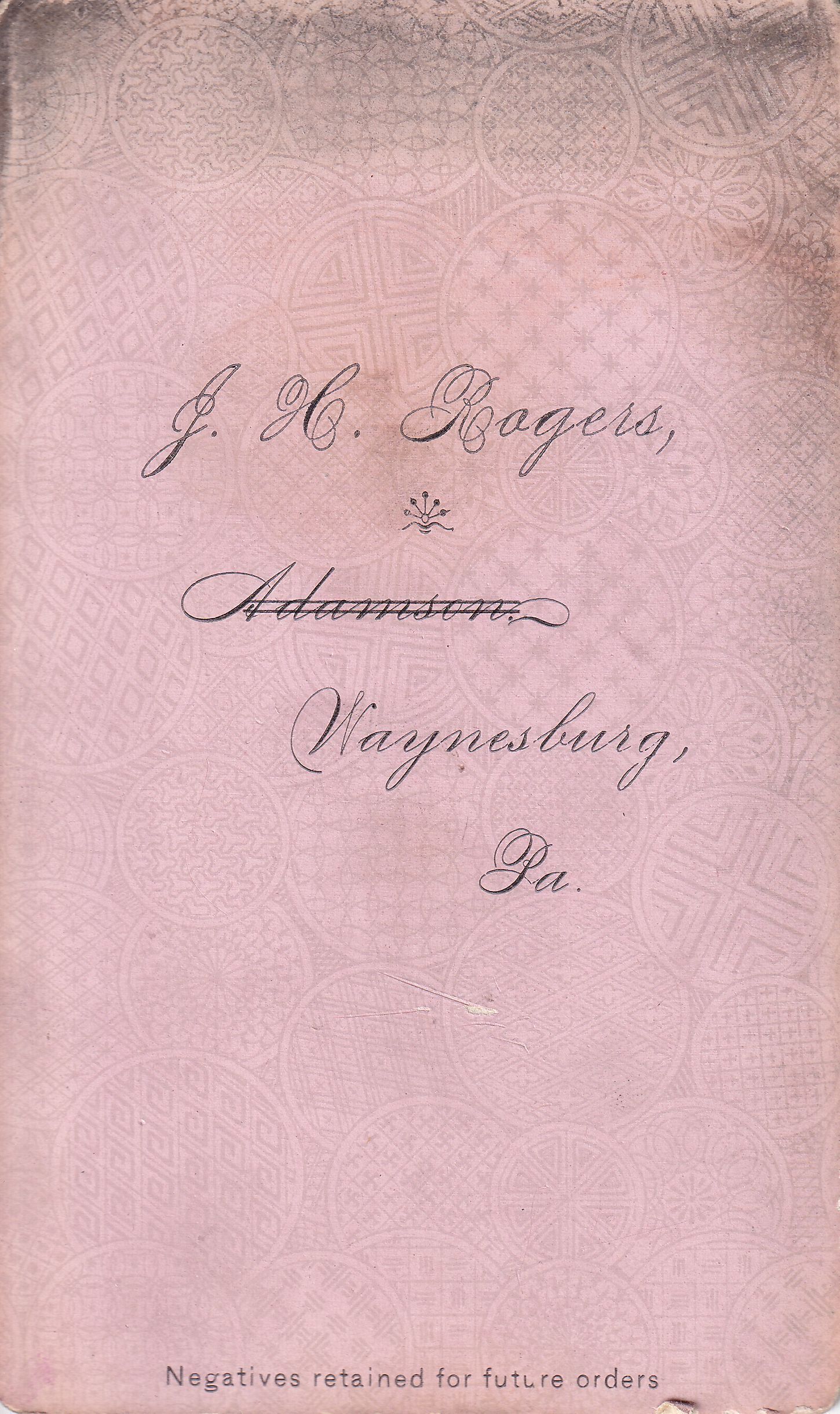 SOURCE CITATION: Phelan-Walker Album, Photo 41 - Mark Gordon Inghram [1880-1970]; circa 1880-1885, image by J. H. Rogers [the name Adamson is crossed out], Waynesburg, Pa.; item no. WAYN-AN008-0041, Waynesburg University Paul R. Stewart Museum Collection, Greene Connections Archives Project (www.GreeneConnections.com).