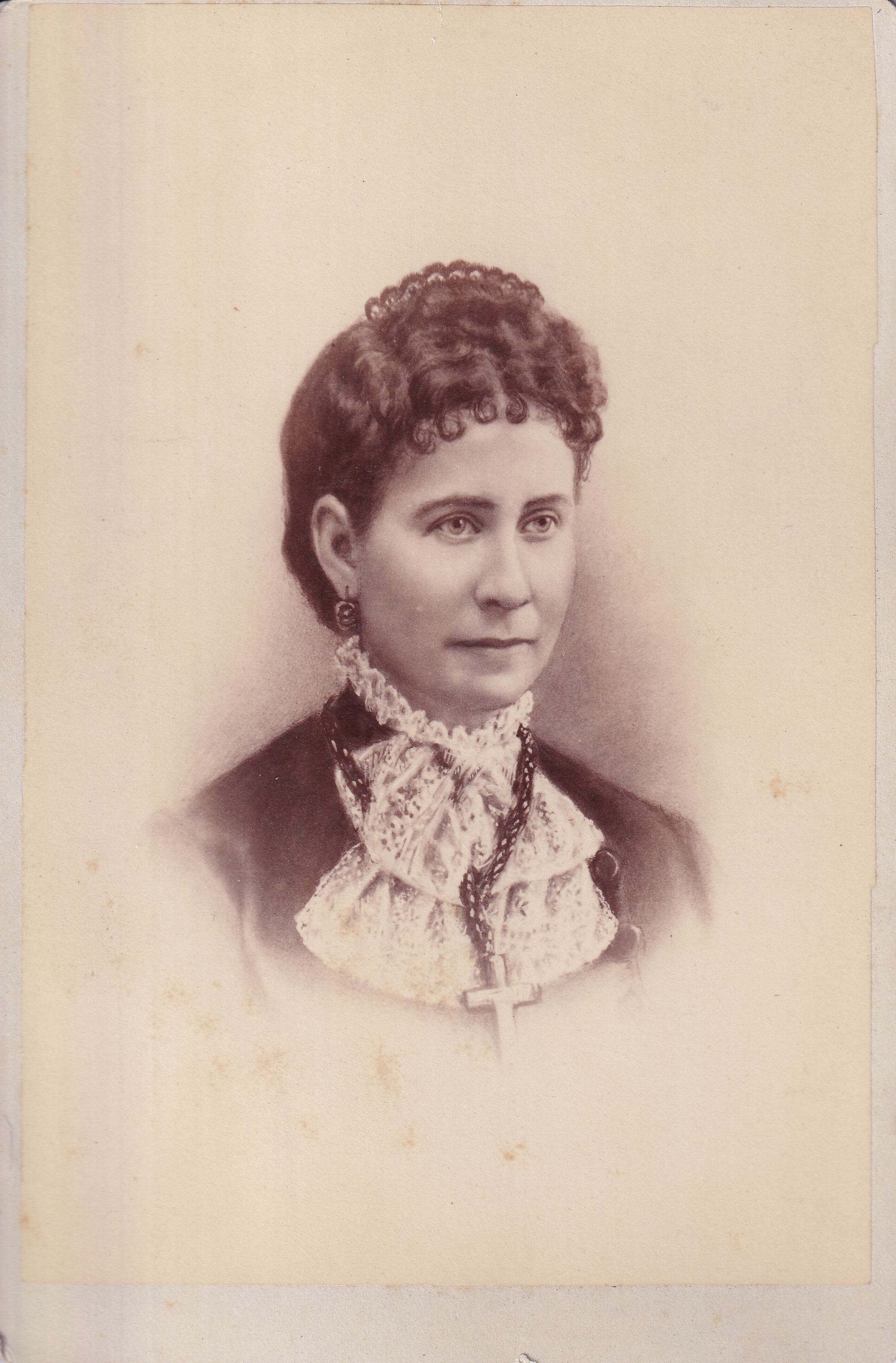 SOURCE CITATION: Phelan-Walker Album, Photo 48 - Emily J. (Wells) Higginbotham [1840-1883]; circa 1880; item no. WAYN-AN008-0048, Waynesburg University Paul R. Stewart Museum Collection, Greene Connections Archives Project (www.GreeneConnections.com).