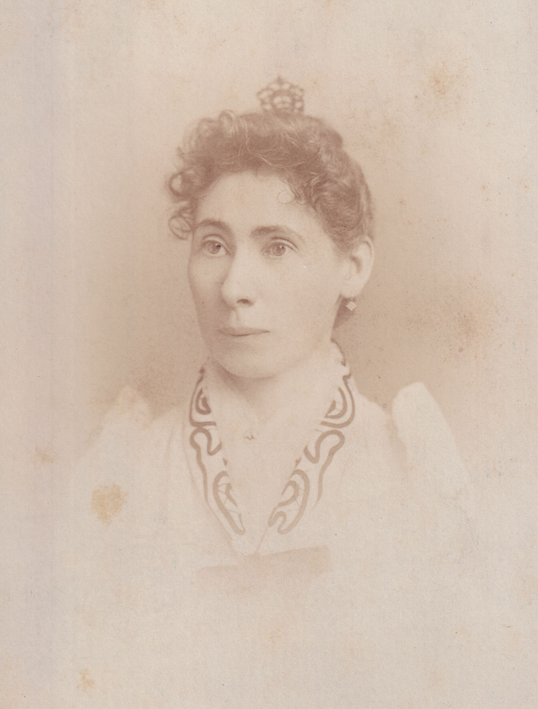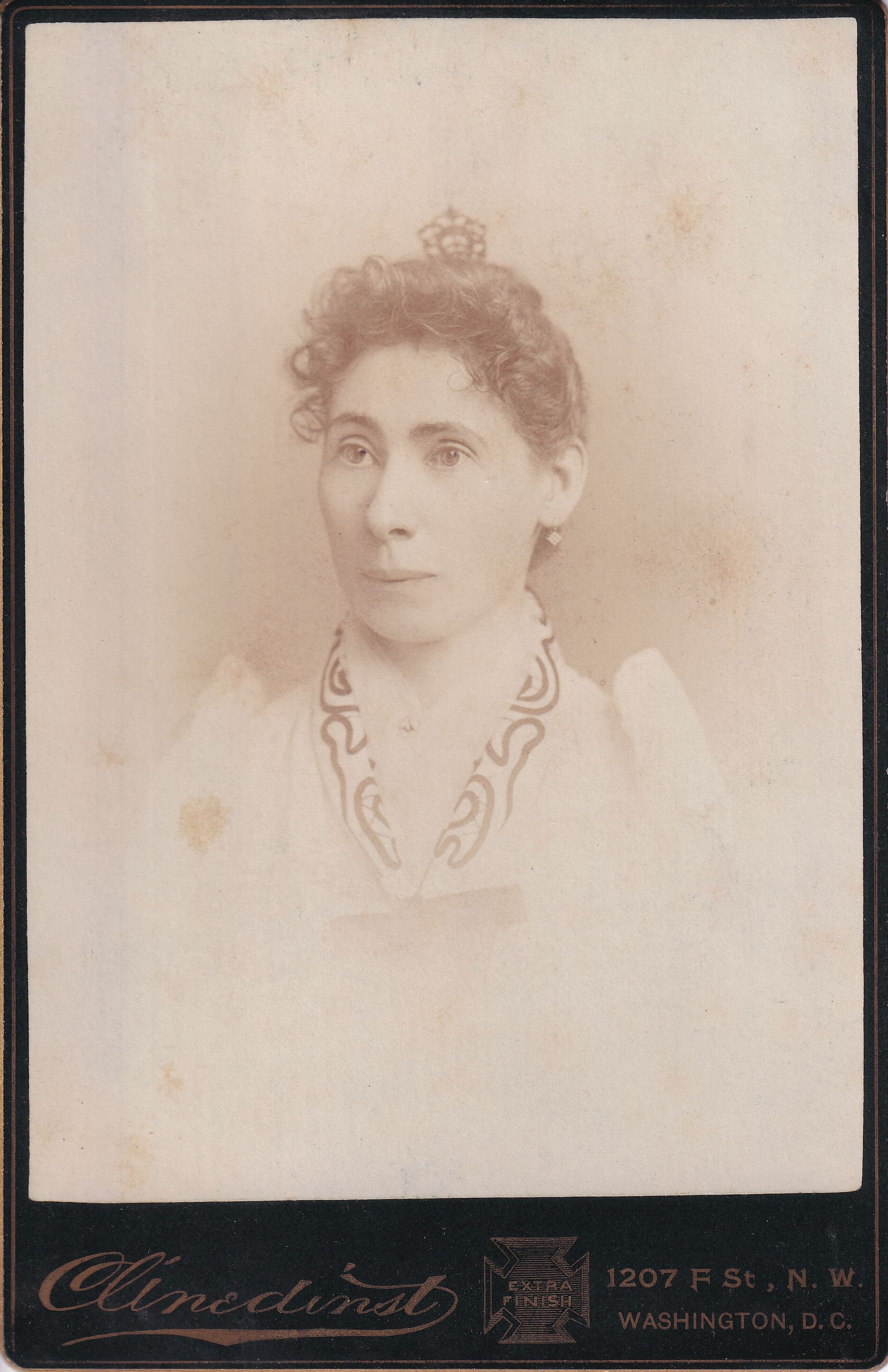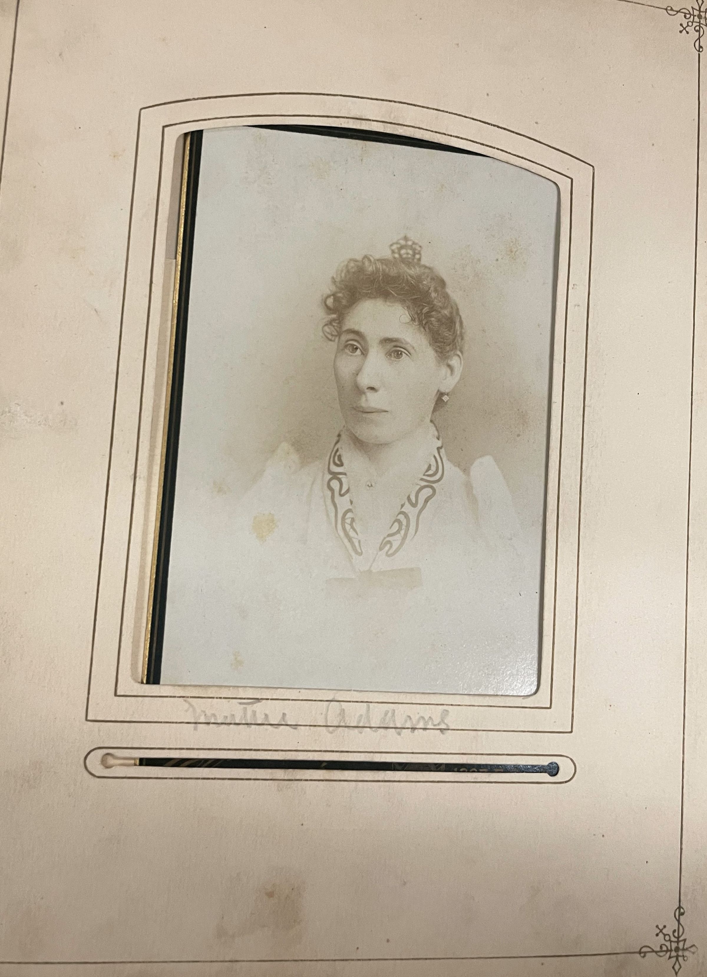 SOURCE CITATION: Phelan-Walker Album, Photo 52 - Martha Paull "Mattie" (Wells) Adams [1853-1935]; circa 1890-1900, image by Clinedinst, 1207 F St. NW, Washington D.C.; item no. WAYN-AN008-0052, Waynesburg University Paul R. Stewart Museum Collection, Greene Connections Archives Project (www.GreeneConnections.com).