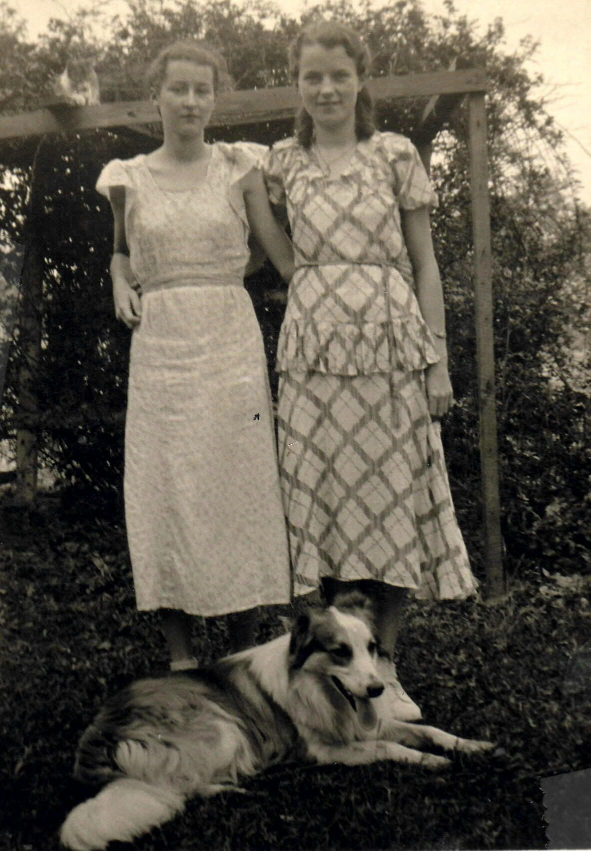 Source Citation: Rachel (Livingood) Jones and Sara (Livingood) Buchanan with family dog "Laddie," item no. CAND_AN002_0044, Candice Lynn Buchanan Collection, Greene Connections Archives Project (www.GreeneConnections.com).