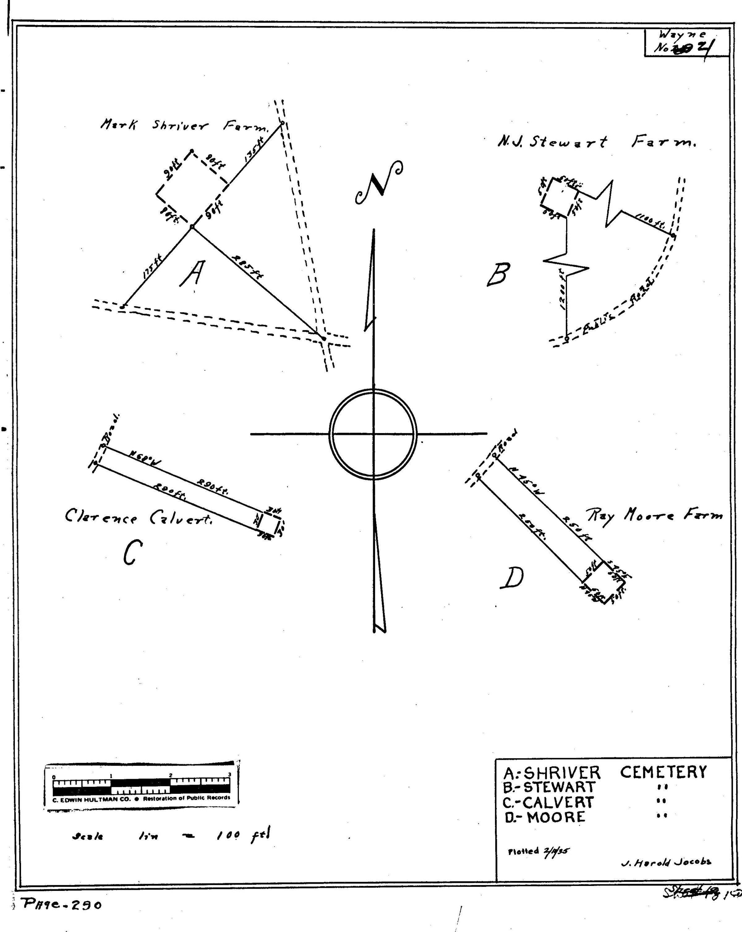 SOURCE CITATION: WPA Cemetery Plat - Pennsylvania - Greene County - Wayne Township - Ray Moore Farm Cemetery (1935); item no. 2016.3.284, Cemetery Plat (WPA) Collection, surveyed by Works Projects Administration, copy on file at the Clerk of Courts Office, Greene County Courthouse; Greene Connections Archives Project (GreeneConnections.com).