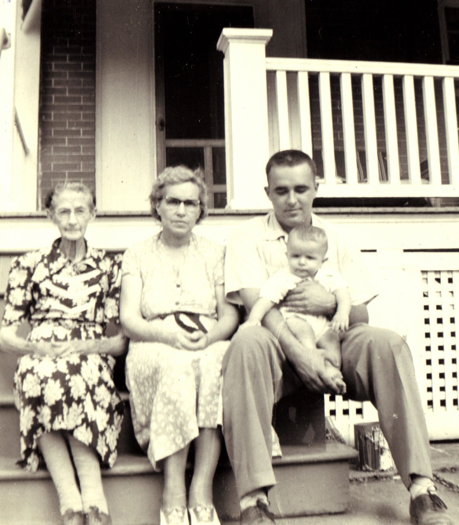 [Left-Right]: Frances "Fannie" (Ankrom) Watson, Garnet (Watson) Bristor, Donald Bristor holding Randal Bristor.