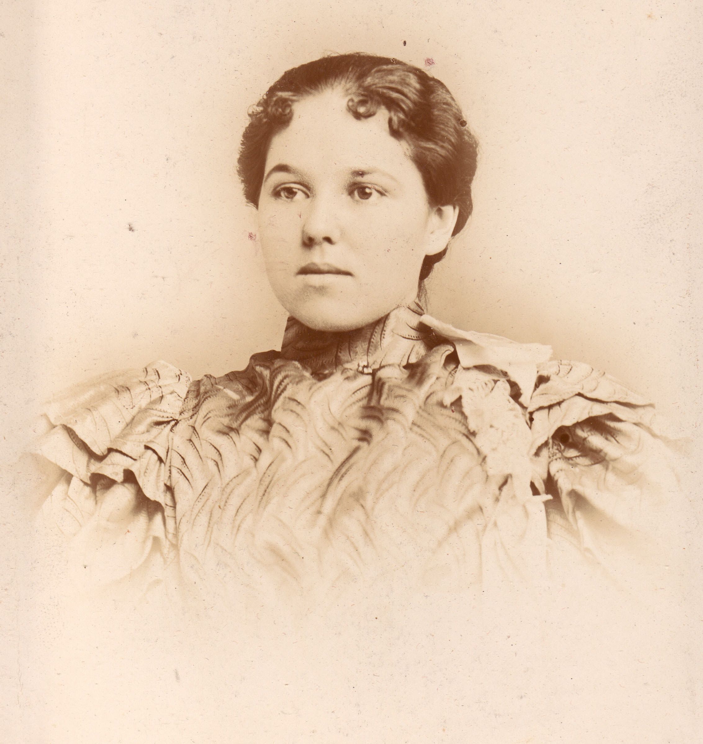 SOURCE CITATION: Rice-Fordyce Album 01, Photo 13 - Lillian Maude (Rice) Kent [1880-1933]; circa 1895-1900, image by Rogers & Weaver, Waynesburg, Pa.; item no. RICE-AN001-0001-0013, John Robert Rice Collection, Greene Connections Archives Project (www.GreeneConnections.com).