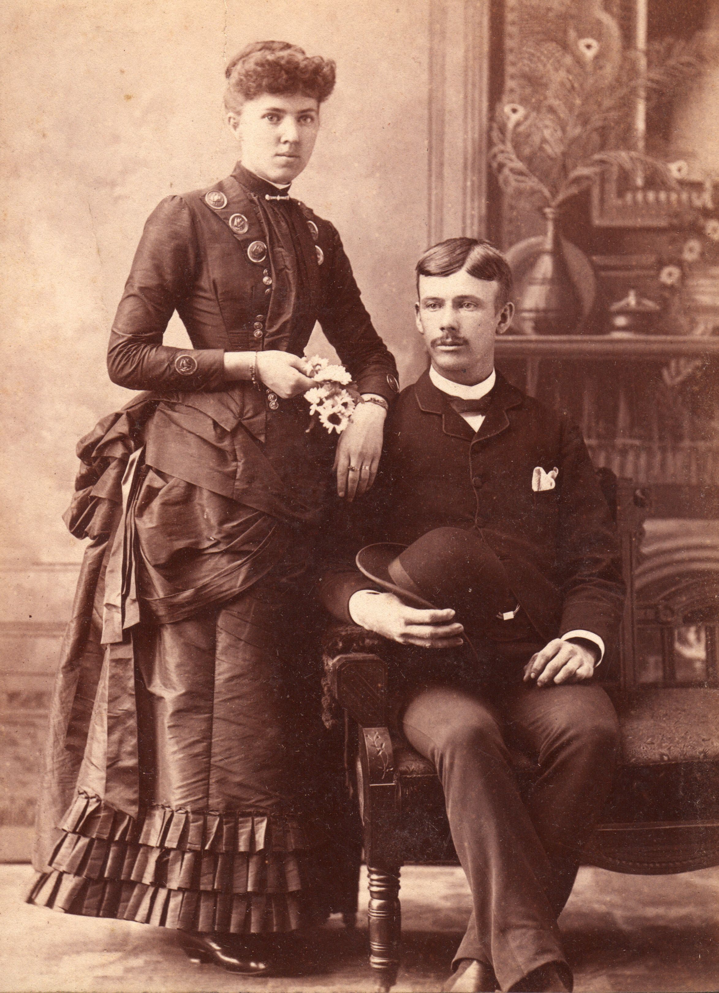 SOURCE CITATION: Rice-Fordyce Album 02, Photo 24 - Albert Brownson Throckmorton and his wife, Elmira "Ella" (Smith) Throckmorton; circa 1885-1895, image by E. D. King, Chardon, O.; item no. RICE-AN001-0002-0024, John Robert Rice Collection, Greene Connections Archives Project (www.GreeneConnections.com).