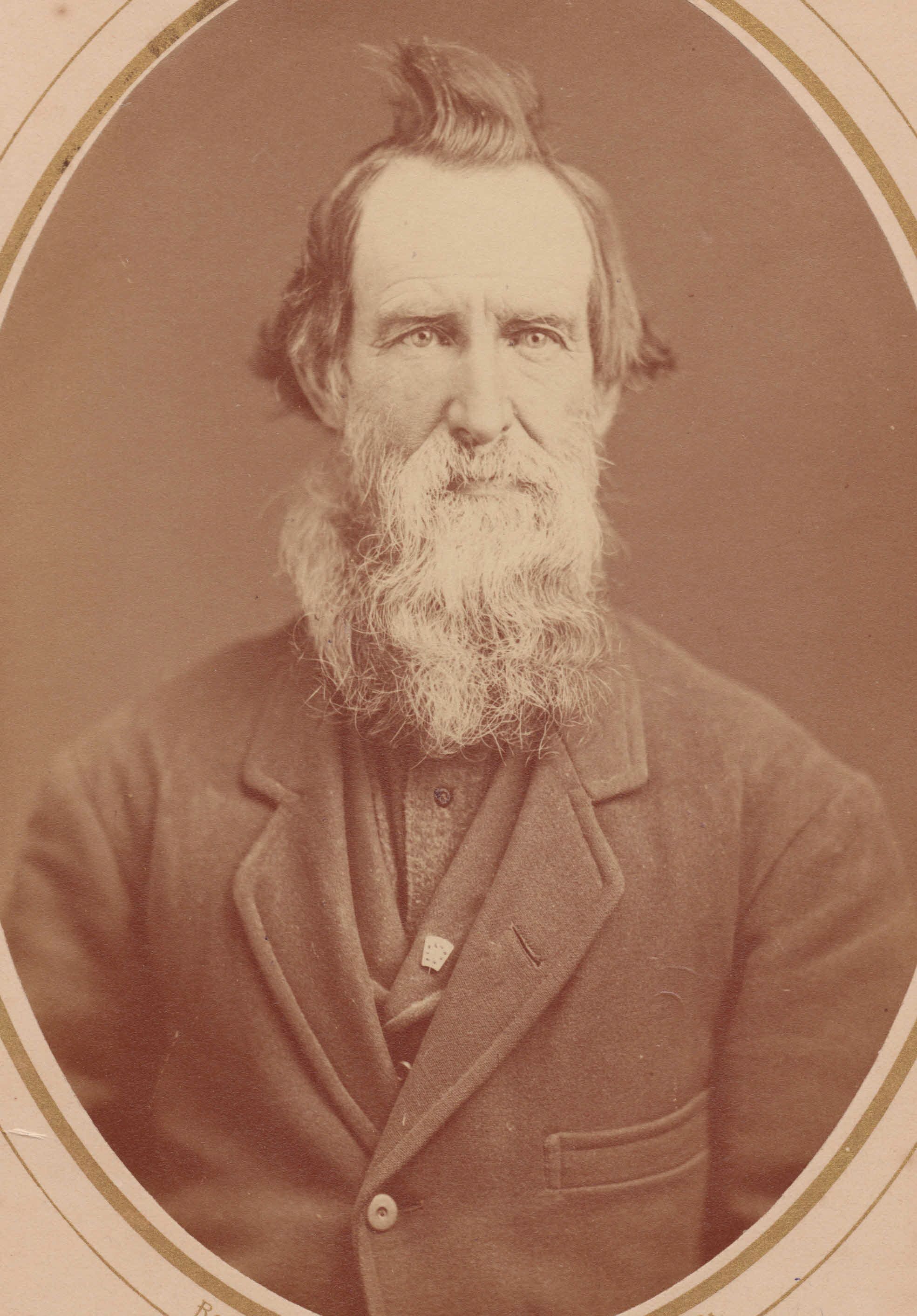 SOURCE CITATION: Robert Morris [1816-1891]; circa 1870-1890. image by Rogers Bro's. Photographers, Waynesburg, Pa.; item no. RIGG0001, Lois (Morris) Gdovin Collection, shared by Celia (Gdovin) Riggle and her son, Keith Riggle; Greene Connections Archives Project (GreeneConnections.com).