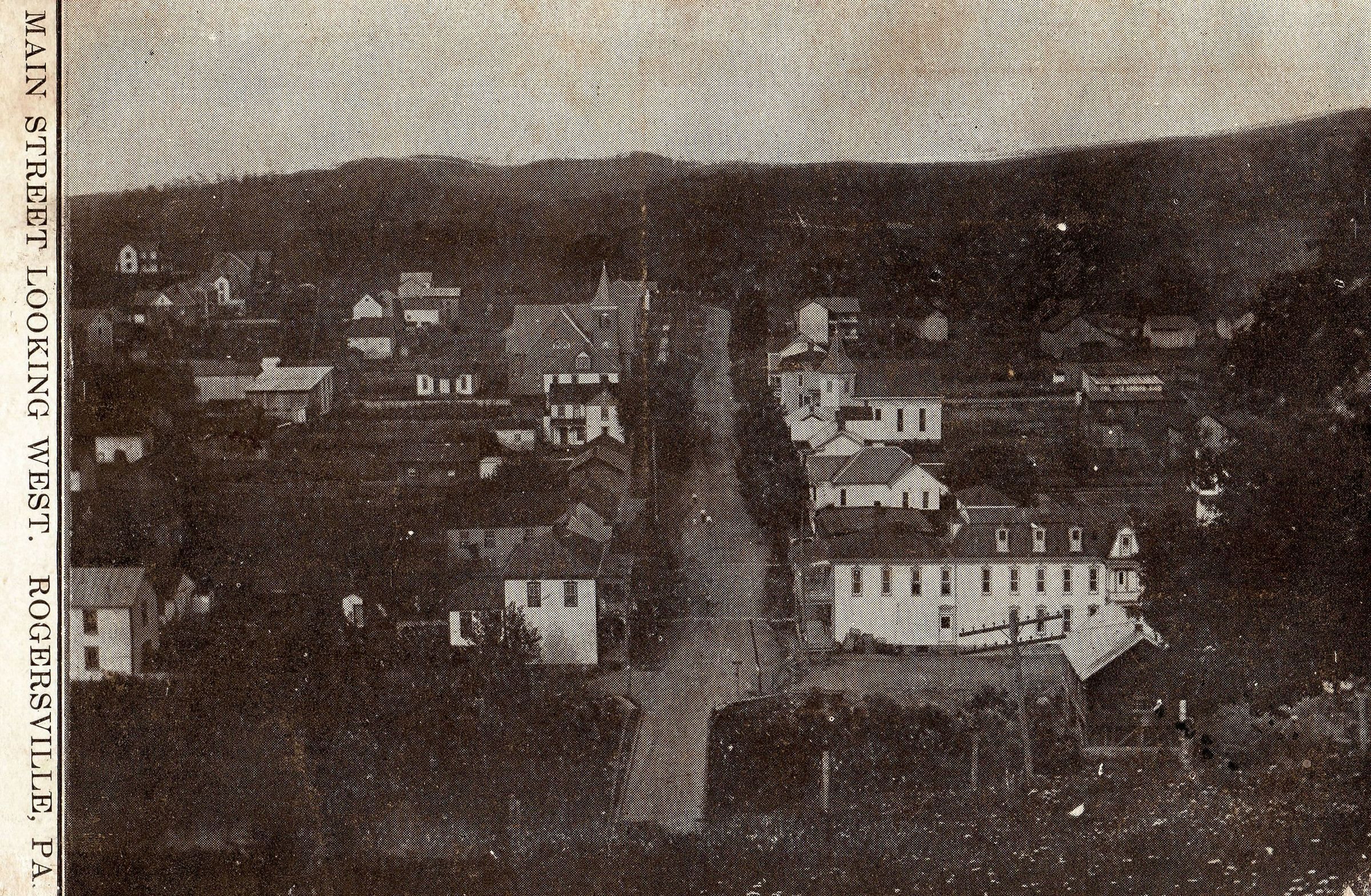 Caption reads, "Main Street Looking West, Rogersville, PA."