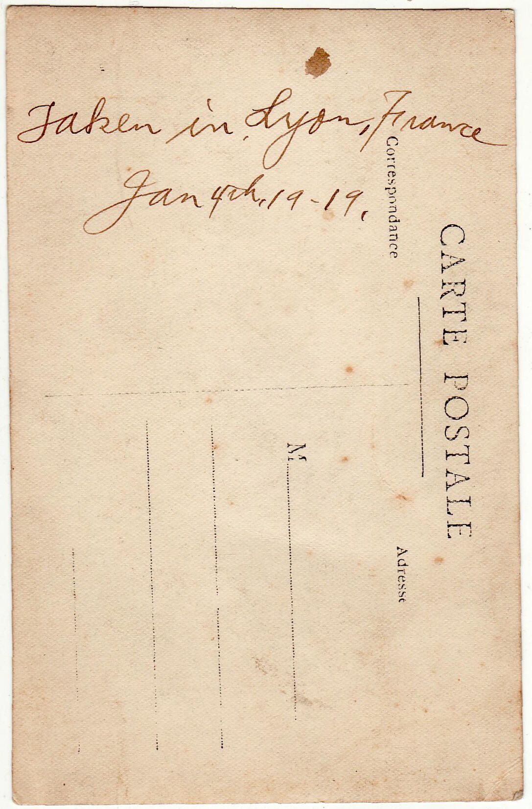 Handwritten inscription reads, "Taken in Lyon, France, Jan. 4th, 1919."