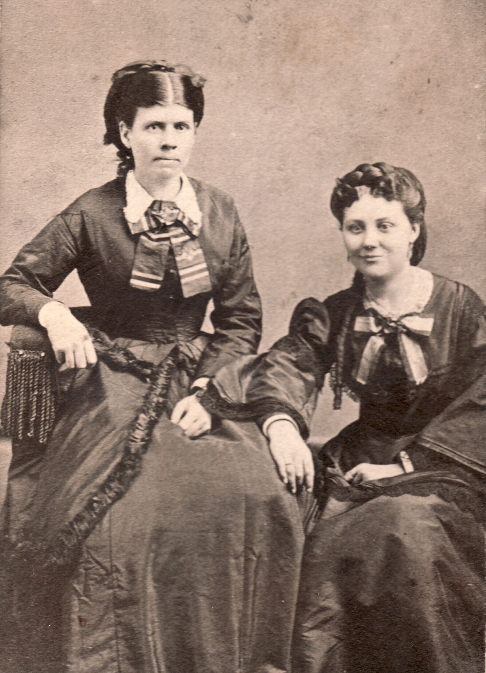 SOURCE CITATION: [Left-Right]: Ruth (Martin) Lucas [1844-1909] and Hannah (Denny) Phelan [1850-1937]; circa 1870-1875; item no. CGSP_AN006_0003_0006, Esther Ruth Hart Series, Cornerstone Genealogical Society Collection; Greene Connections Archives Project (GreeneConnections.com).