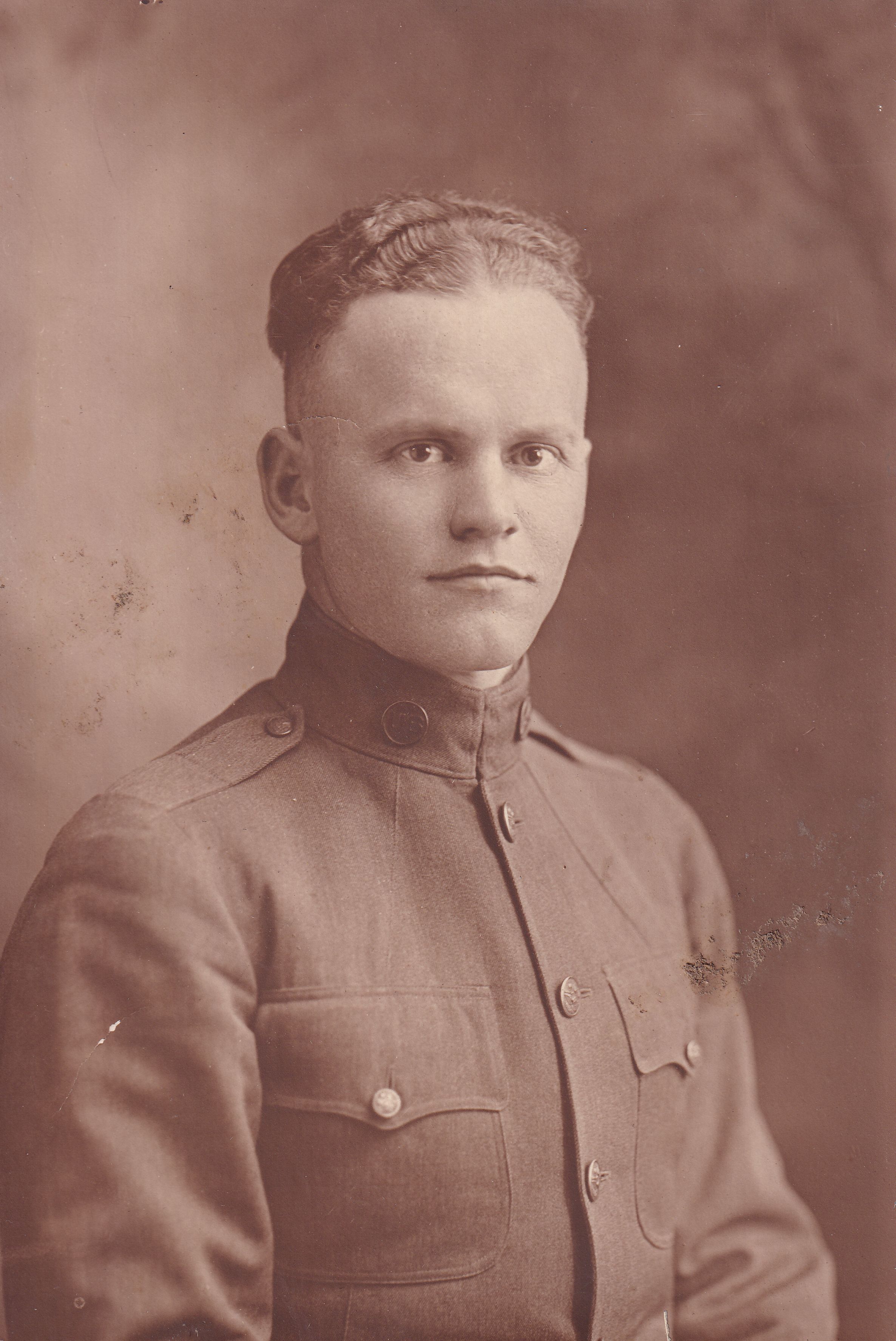 SOURCE CITATION: Samuel Earl Davis [1893-1976] in WWI uniform; circa 1918; item no. MORK-AN002-0025, Davis Series, Elizabeth Jane (Davis) (Rex) Morris Collection, shared by her grandchildren, John Robert Morris and Kathleen (Morris) Miller; Greene Connections Archives Project (www.GreeneConnections.com).